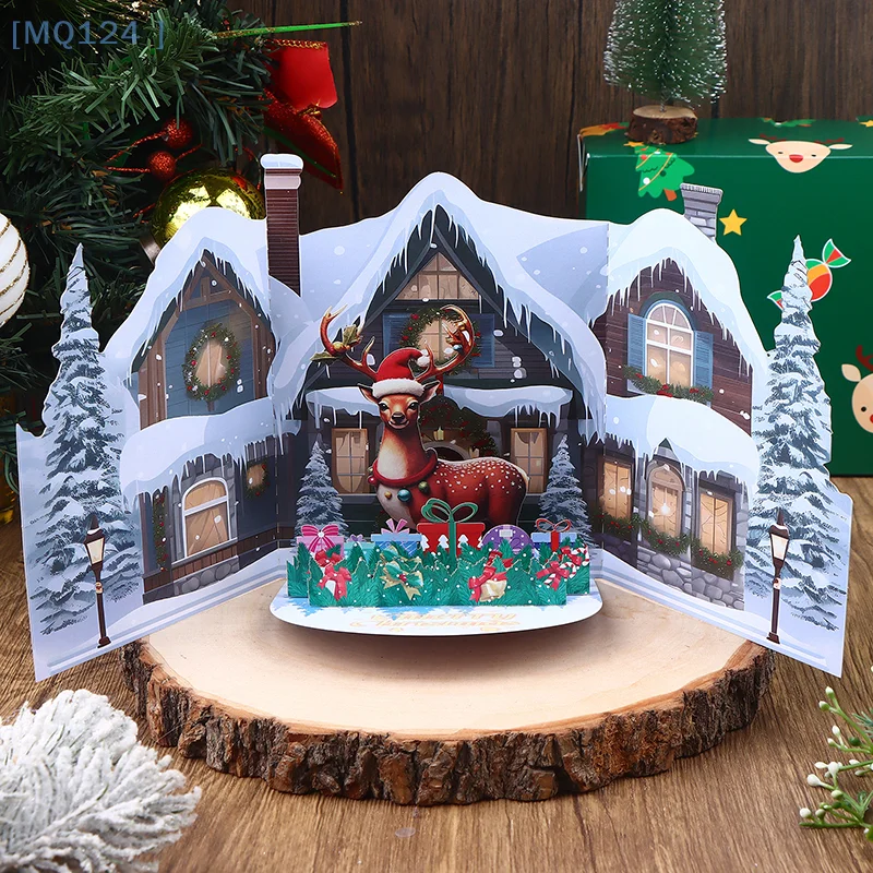 【MQ124】1PC 3D Christmas Card With Snowy Winter House And ELK Design Envelope Included Festive Greeting For Family Friends