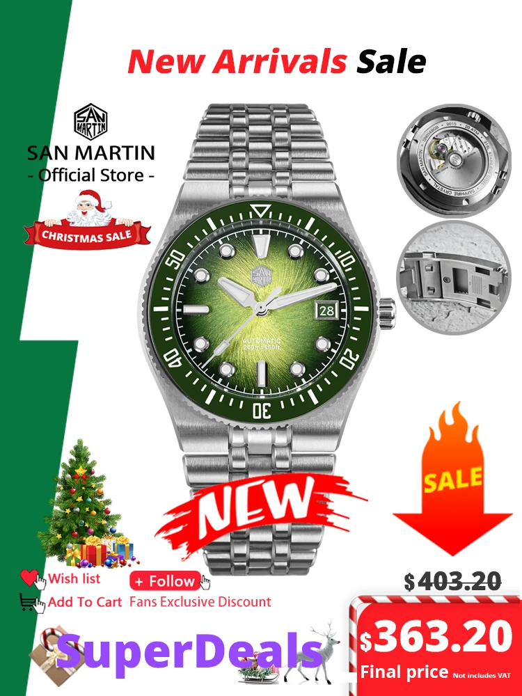 San Martin 40mm Enamel Spiral Dial Integrated Bracelet Men Diver Watch Miyota 9015 Automatic Mechanical Waterproof 200m SN0148