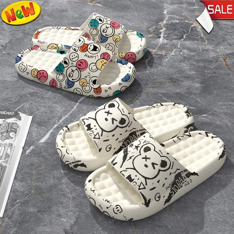 2024 New Fashion Men's Women Slippers Summer Beach Sandals Print Thick Soled EVA Home Slipper Non-slip Indoor Bathroom Flip Flop