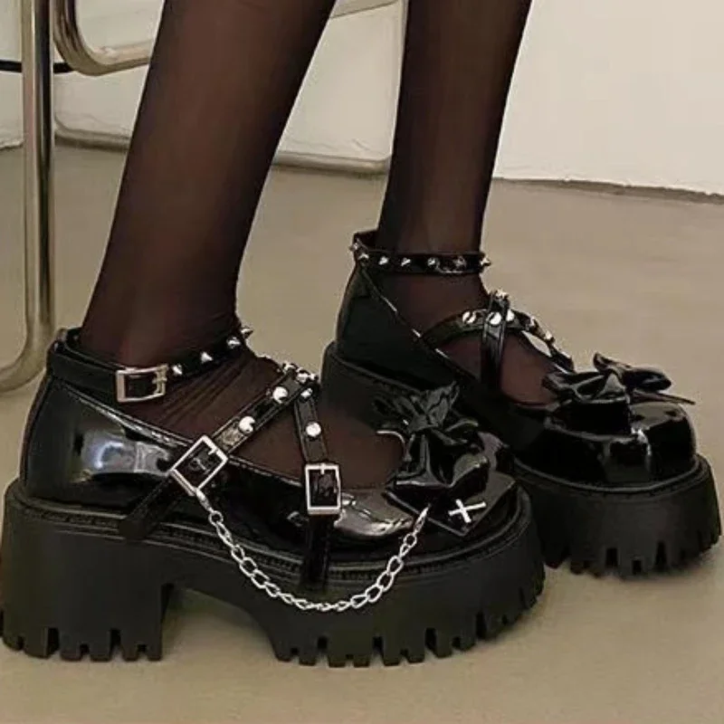 Black Mary Jane Shoes Lolita Solid Color Spring Fashion Butterfly Knot Outdoors Thick with Non-slip Pumps Shoes