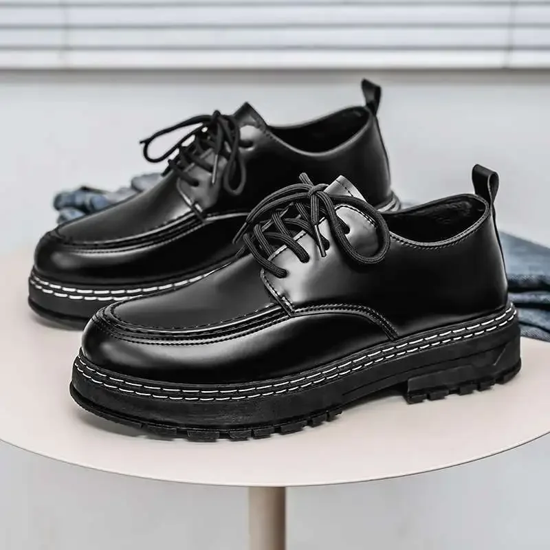 Men's Black British Style Leather Shoes Size 46 47 Formal Business Footwear Adult Foot Cover PU Upper PVC Outsole