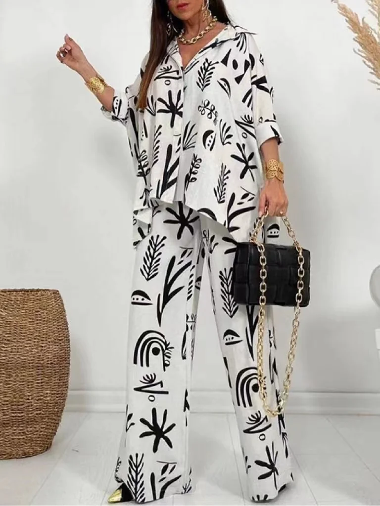 2023 Autumn Wide Leg Pants Two Piece Sets Outfits Womens Spring Long Sleeve Button Down Shirt Suit Casual 2pcs Set For Female