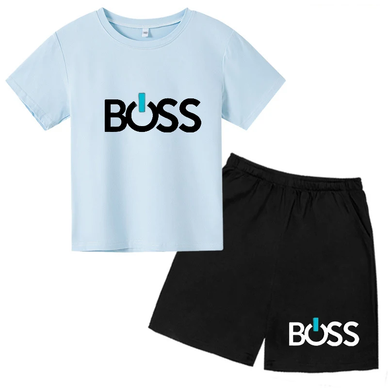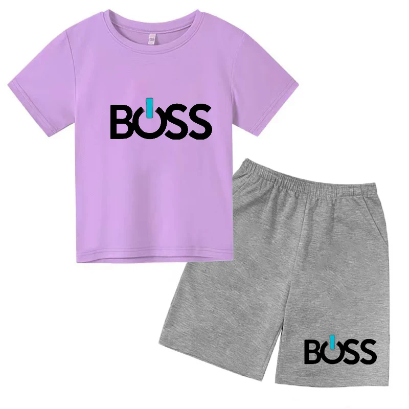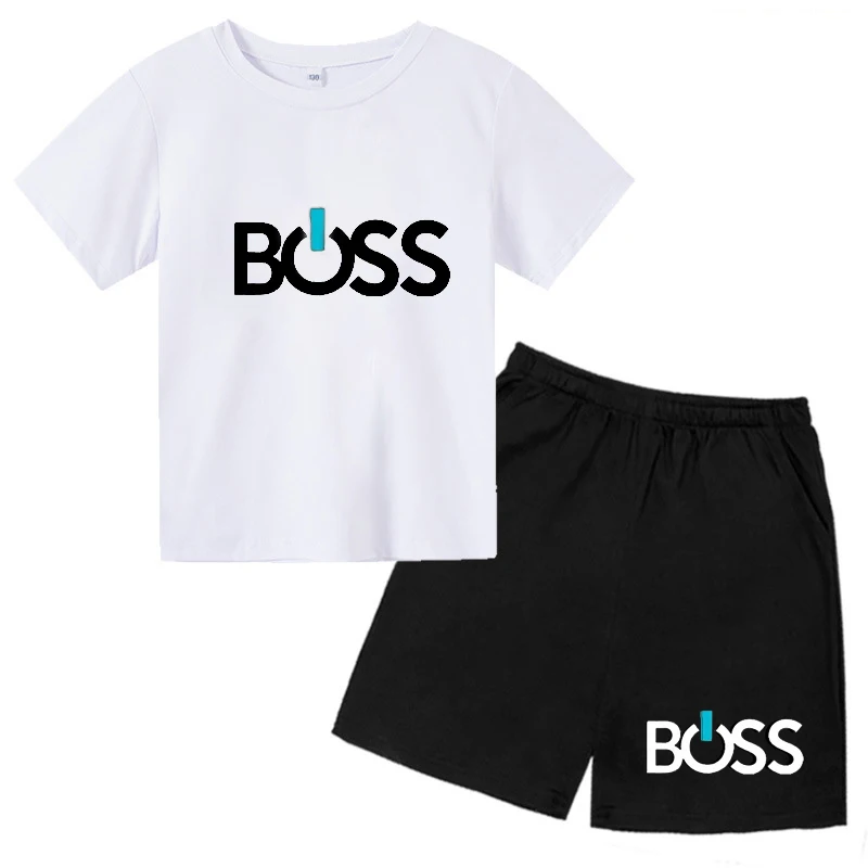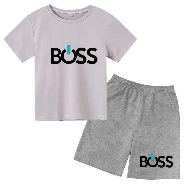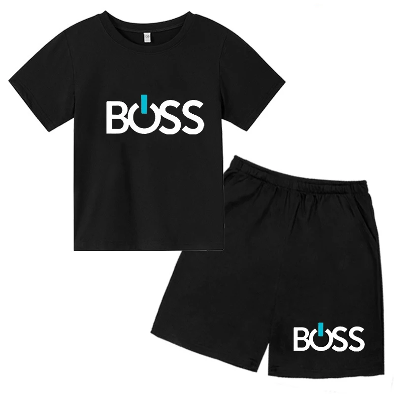 2024 Children’s Summer Boss Pattern Printed Solid Color Short Sleeve Clothing Tee Sets Boys Girls New Style Casual Fashion Suits