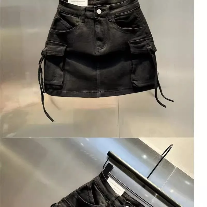 2024 New Fashion Three Dimensional Strap Pocket Wash High Tooling Denim Skirt Women Y2K Summer Vintage Casual Joker A Skirt