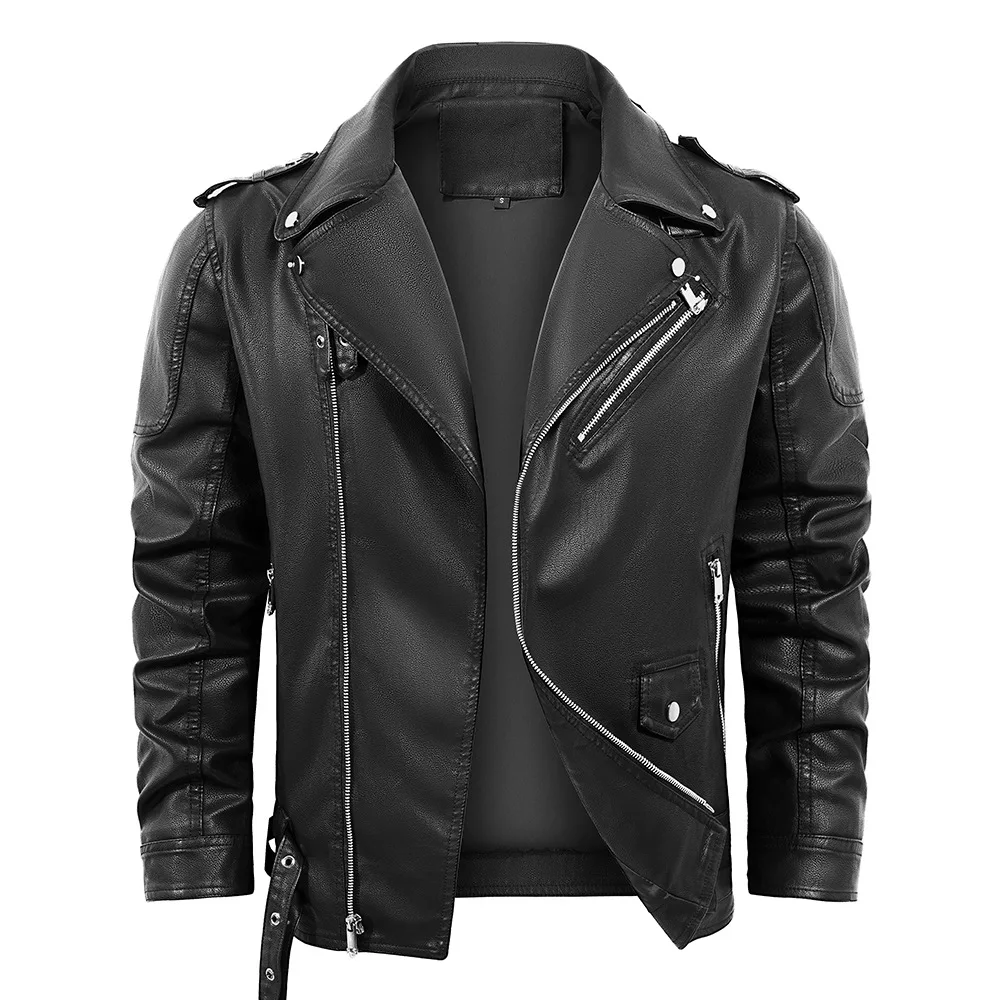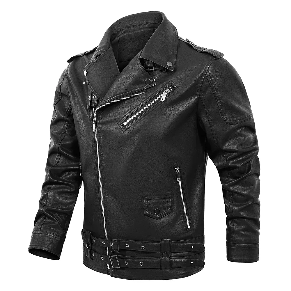 2025 Autumn Man Leather Jacket High Street Punk Turn Down Collar Men Coat Solid Color Long Sleeve Belt Zipper Male Outerwear