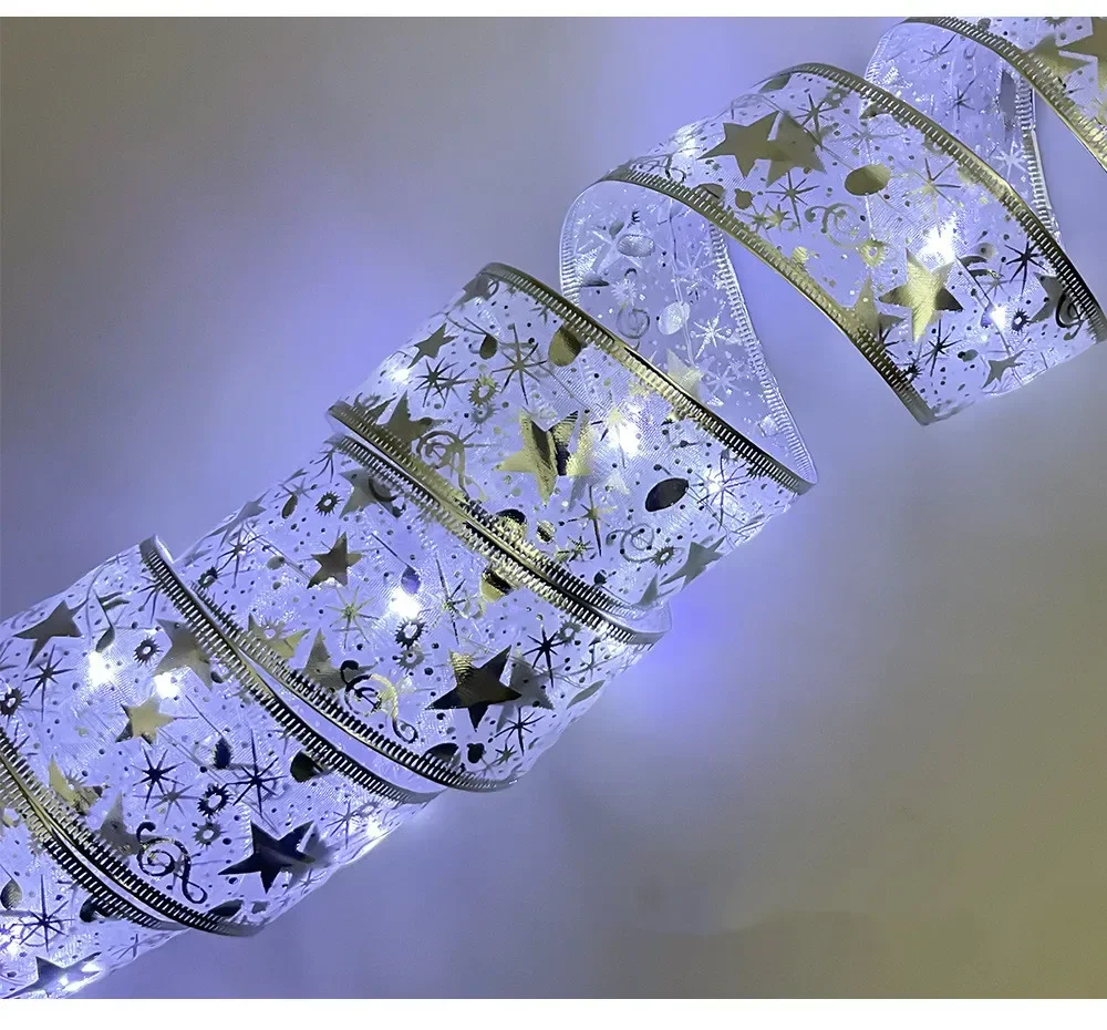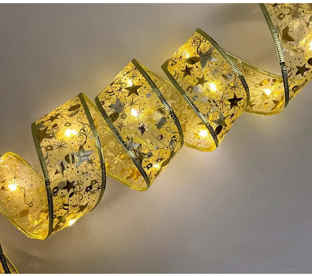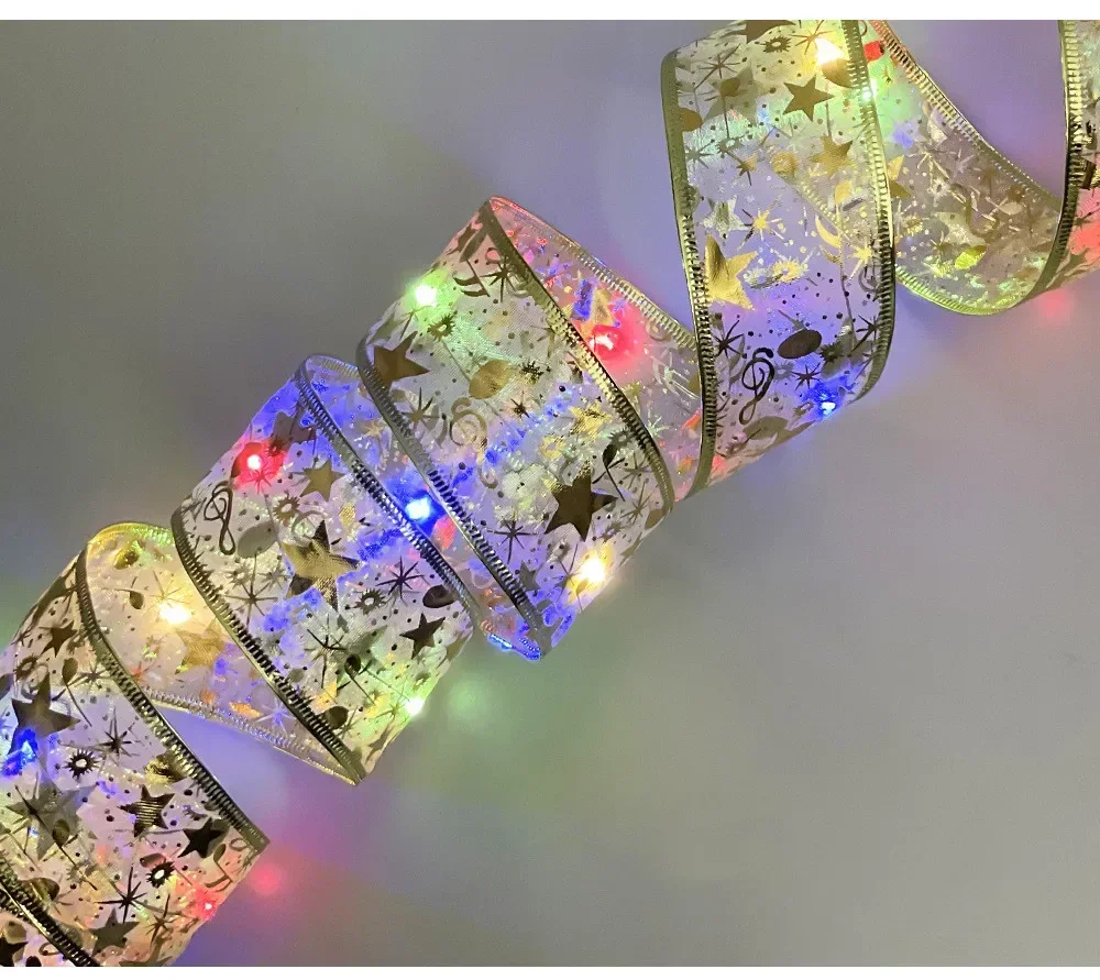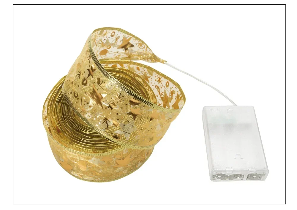 Features:Fairy Lights Strings Christmas Ribbon Bows with LED Christmas Tree Ornaments New Year Navidad Home Decor
