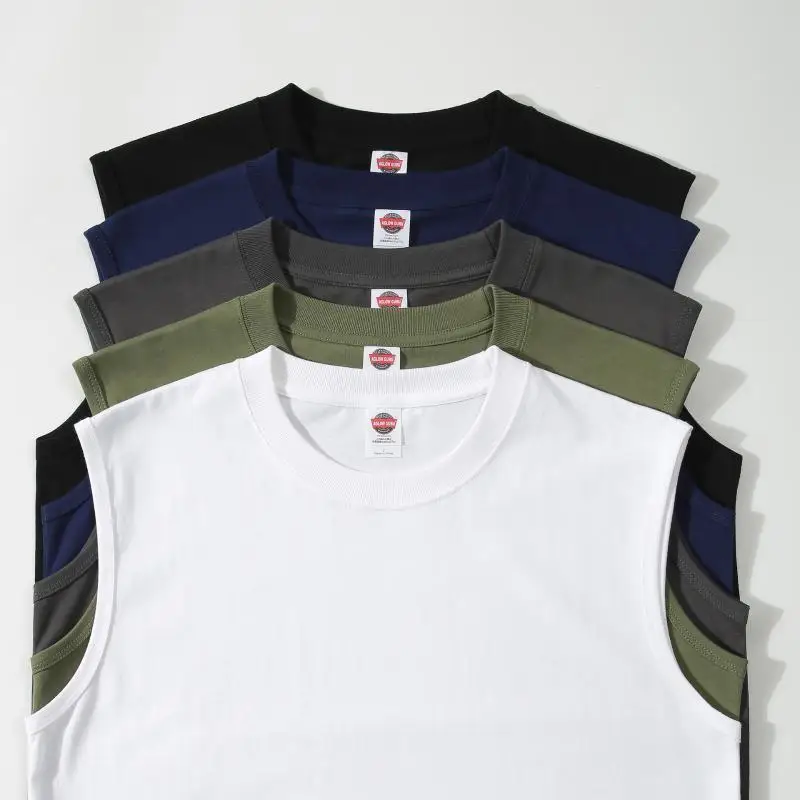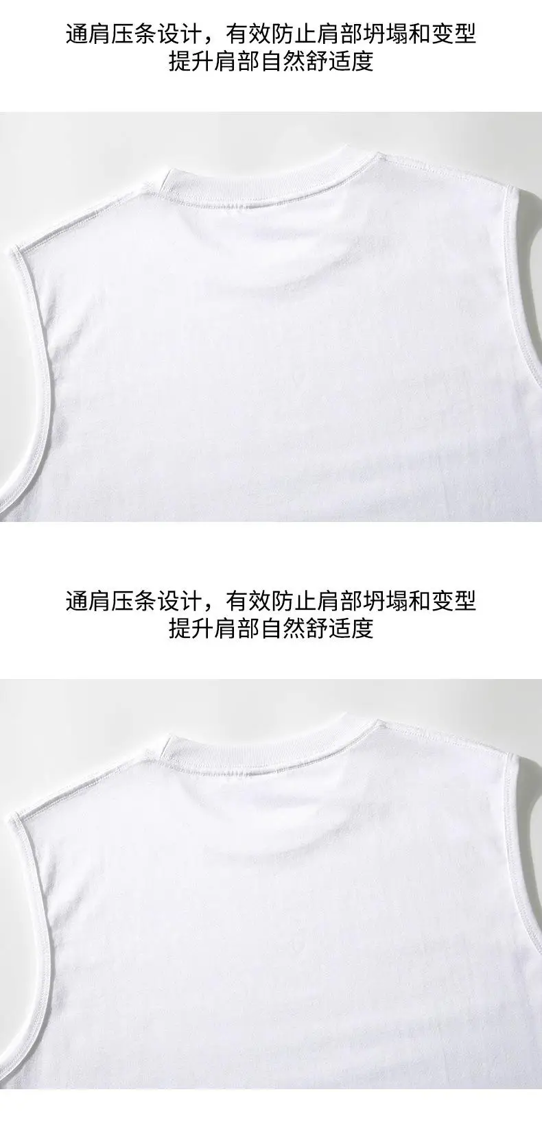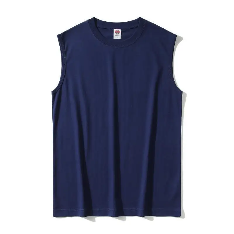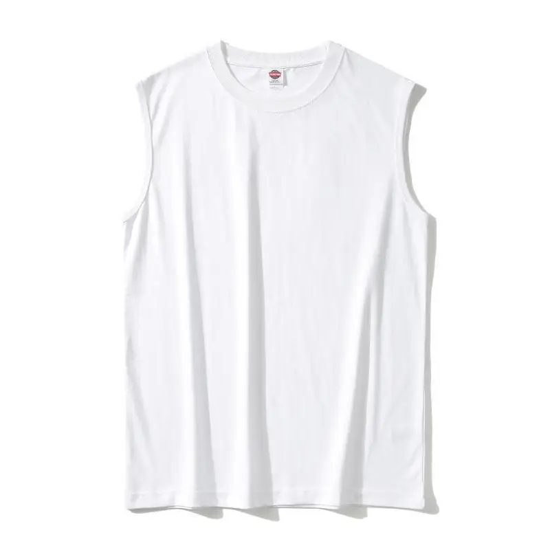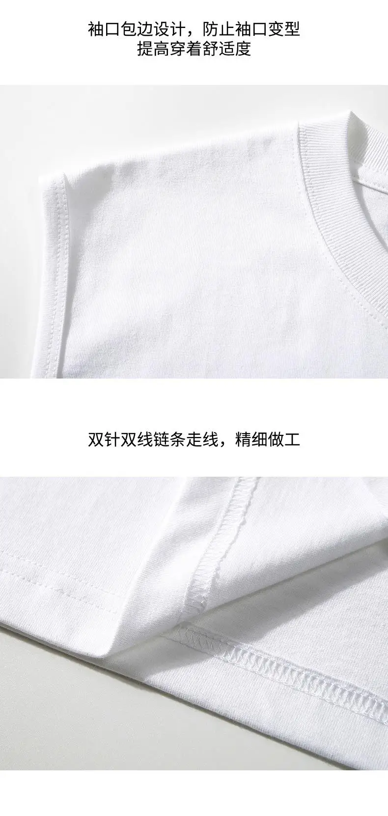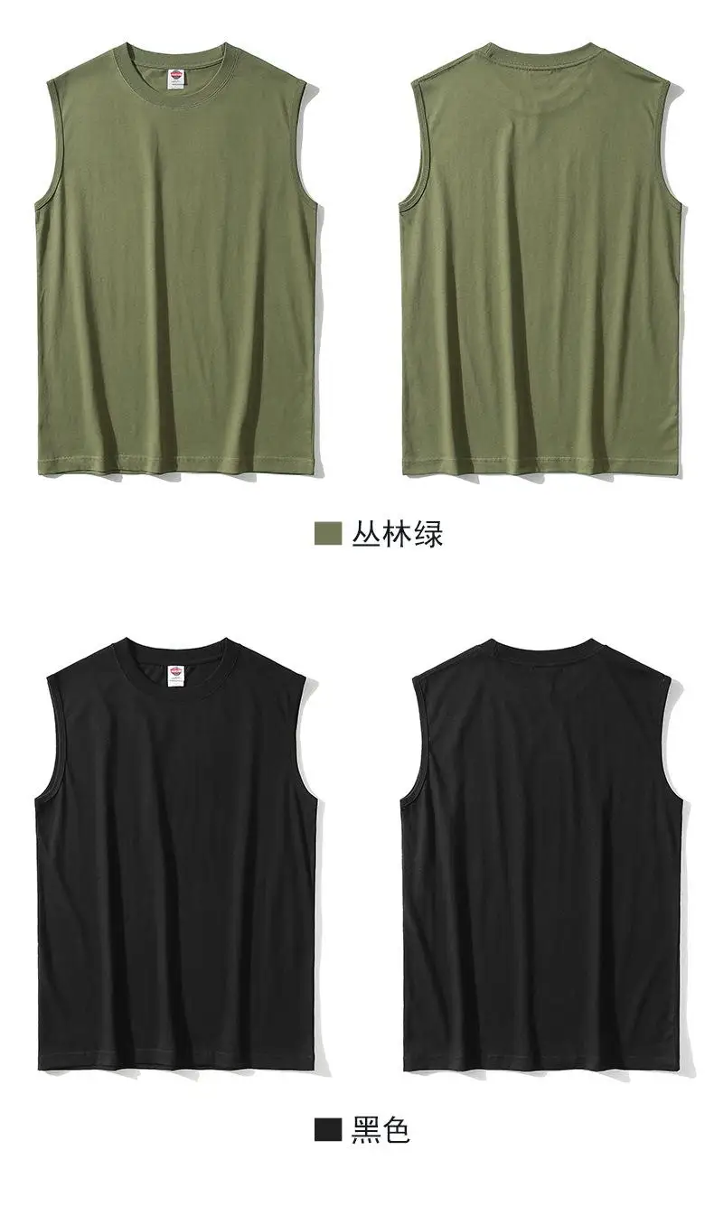 220g 100% Cotton Round Neck Vest Men's Custom Pattern Summer Sports Fitness Running Loose Sleeveless T-shirt Printed With Logo