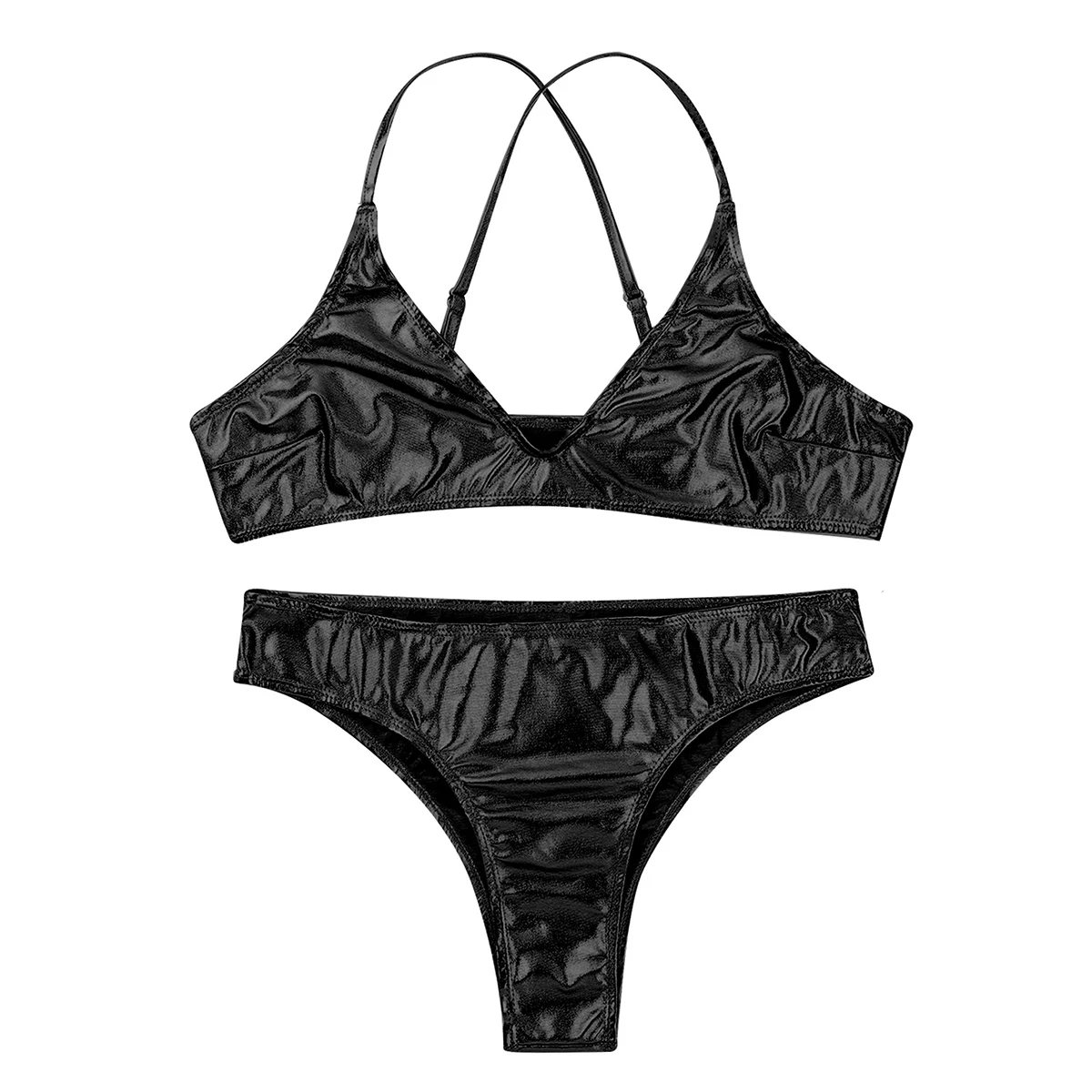 Women shiny metallic bikini swimsuit set, good elastically and quickly dry material.