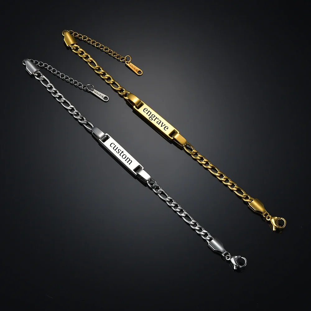 Akizoom Engrave Name 45cm Necklace Punk Custom Bracelet Stainless Steel Jewelry Set for Woman Cuban Chain for Man Birthday Gift