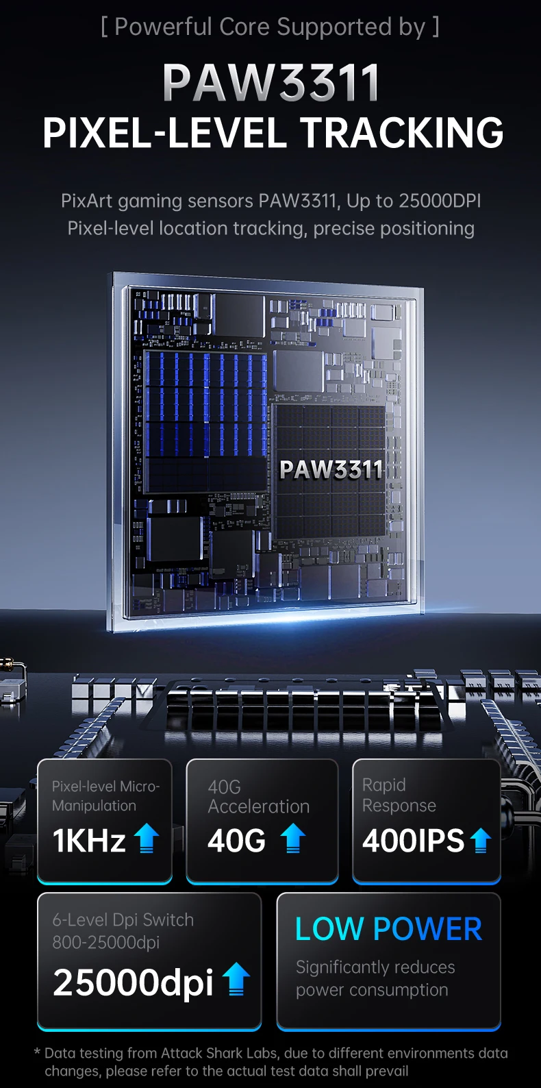 • Sensor: PAW3311 custom flagship sensor