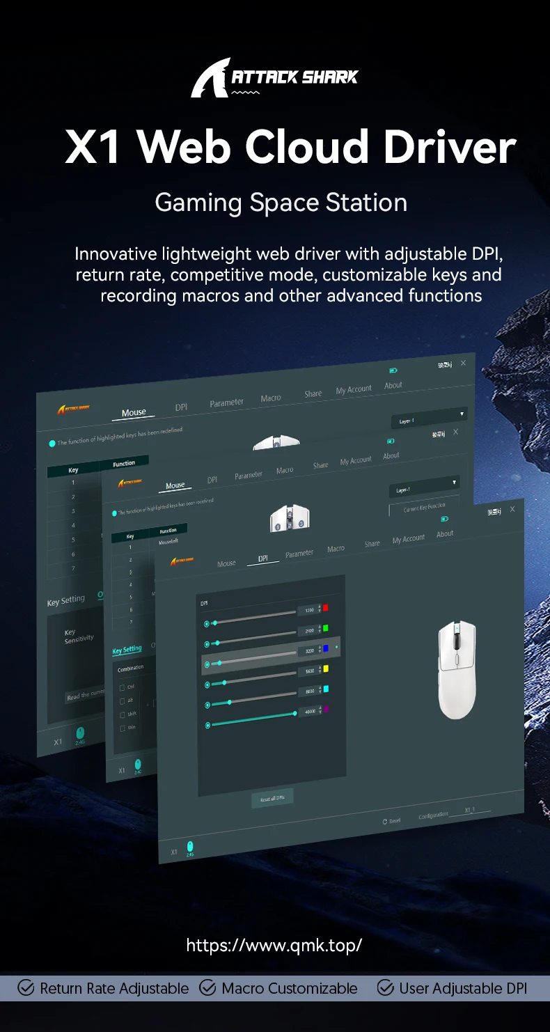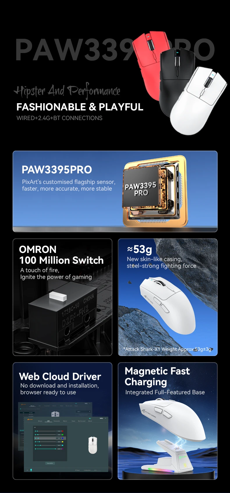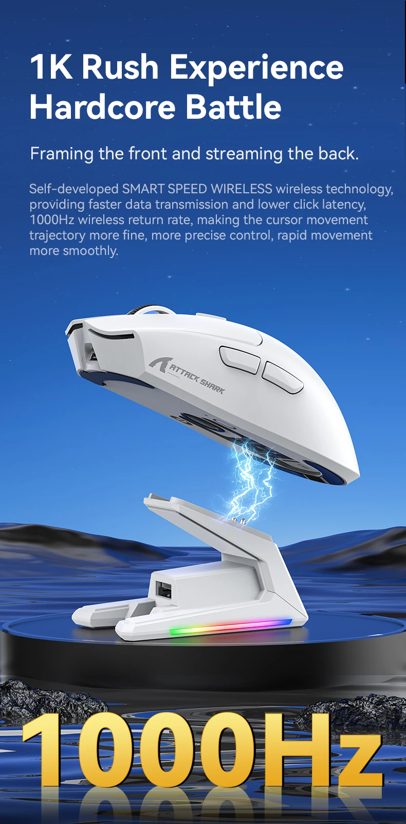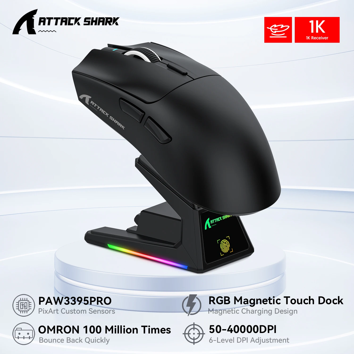 ATTACK SHARK X1 Tri-Mode Gaming Mouse|PAW3395PRO Sensor 40000DPI |RGB Magnetic Dock|100M Clicks|2.4G Wireless/Bluetooth/Wired