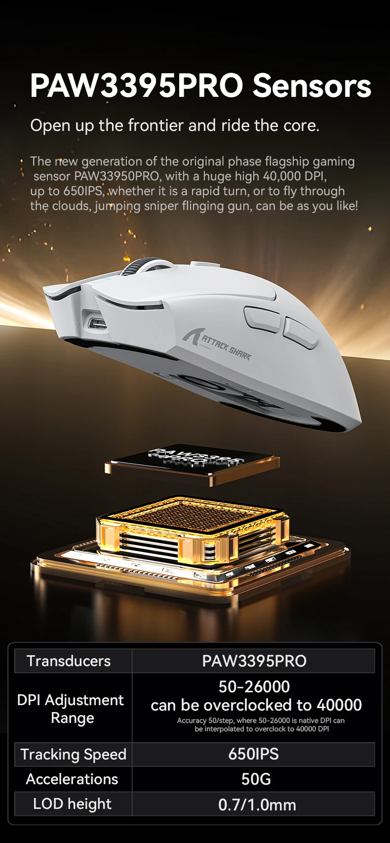 40000DPI high precision, 650IPS tracking speed, ensures accurate responsive control
