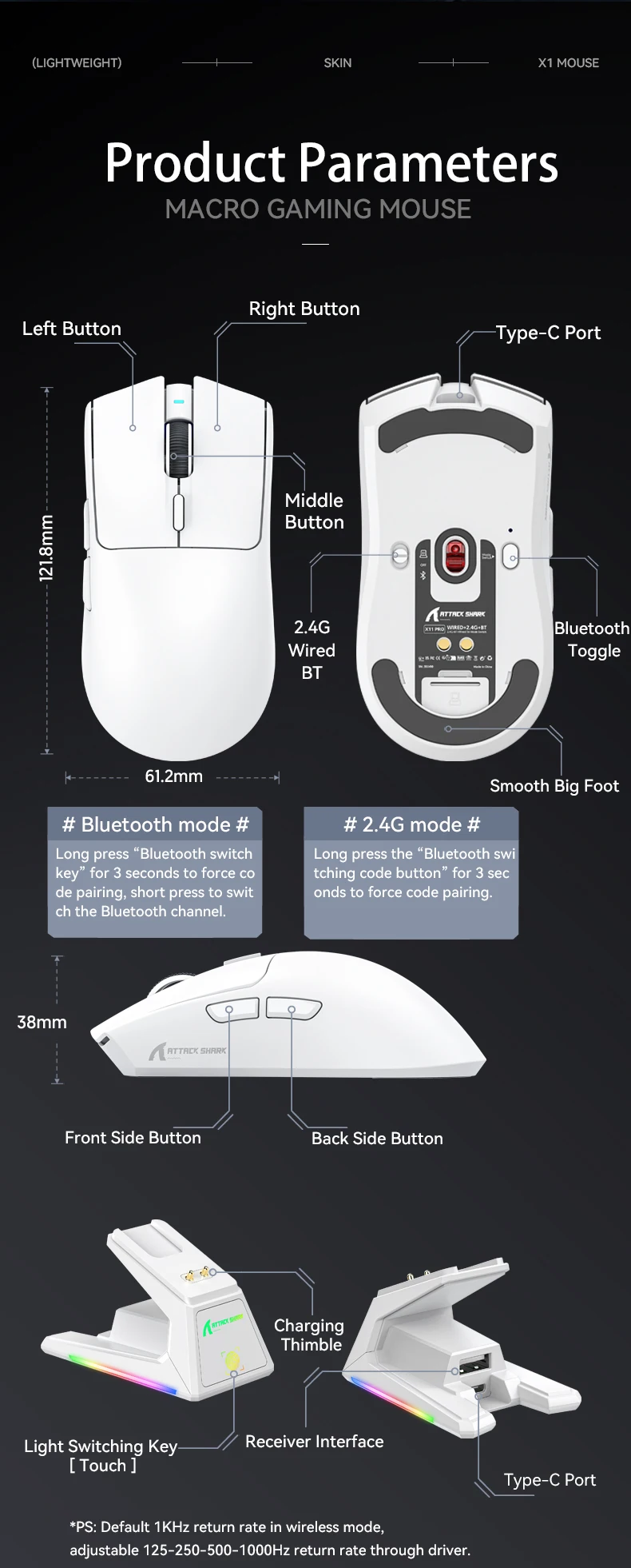 Be the first to review “ATTACK SHARK X1 Tri-Mode Gaming Mouse|PAW3395PRO Sensor 40000DPI |RGB Magnetic Dock|100M Clicks|2.4G Wireless/Bluetooth/Wired”