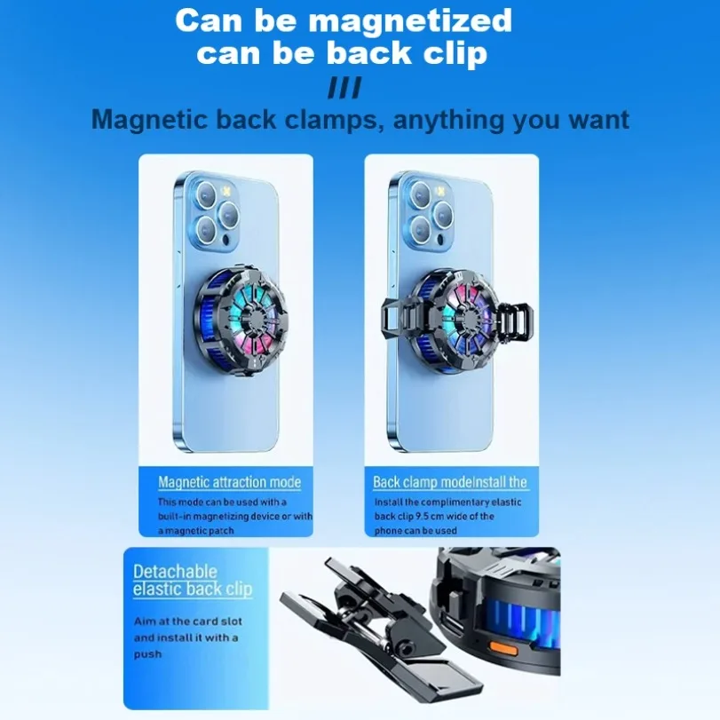 Back Clip Coooler Fan Radiator Magnetic Wireless Charger Phone RGB Light For Magsafe iPhone 16 15 14 13 12 Pro Max Fast Charging
