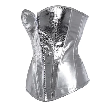 Sapubonva corset bustier top women vintage style gold silver overbust corset leather nightclub sexy korsett lingerie strapless