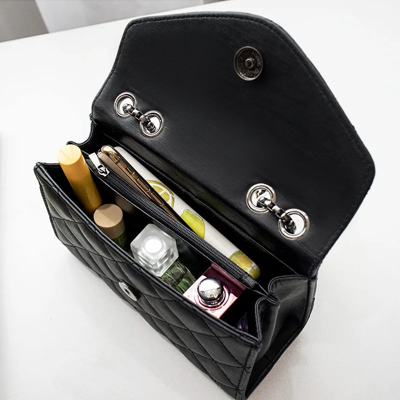 Black Luxury Handbags And Purse Women PU Leather Messenger Shoulder Bag Plaid Female Crossbody Bag Tassel Quilted Brand