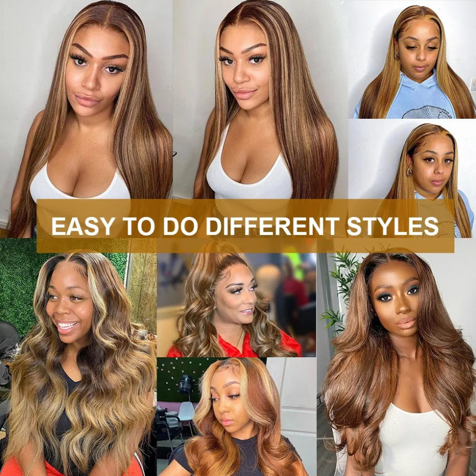 Body Wave Highlight 100% Human Hair Wigs 13x6 HD Lace Frontal Wig Honey Blonde HD Lace Front Highlight Wig 100% Human Hair Wigs
