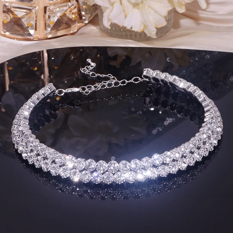 Classic Rhinestone Crystal Choker Necklace Earrings and Bracelet Set for Women Silver Color Bridal Wedding Party Jewelry Sets