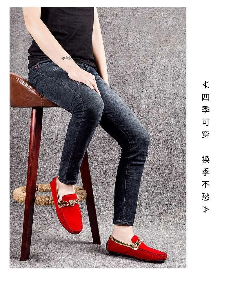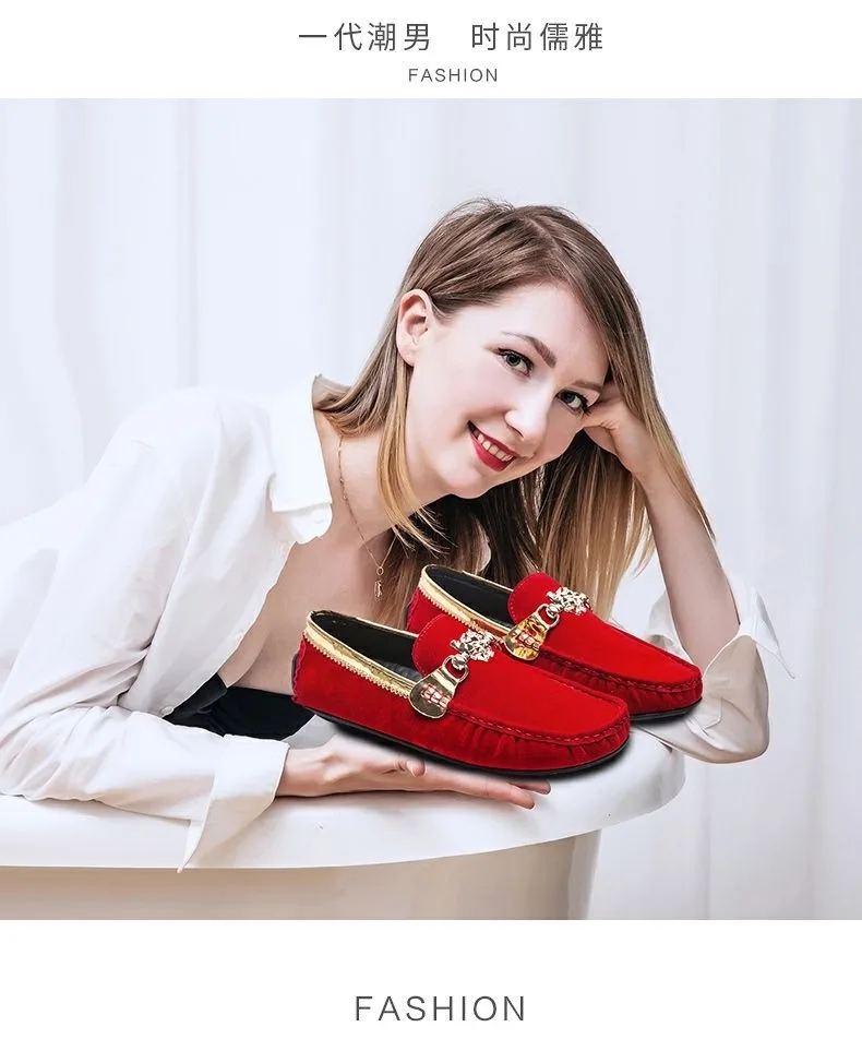designer loafers shoes man luxury black red casual business man slip on shoes office suede loafers herren mocasines mujer