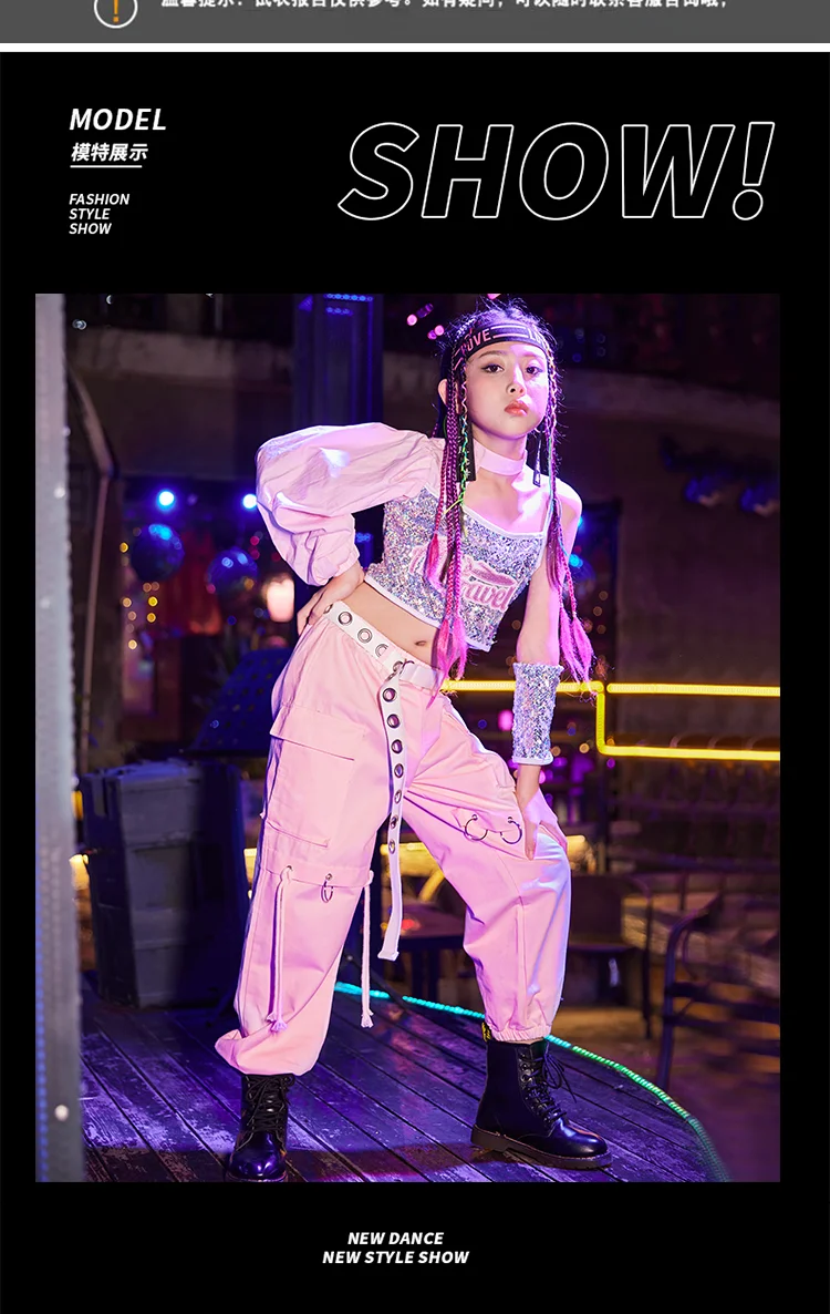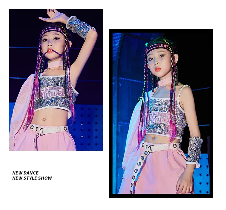 Girls Sequins Hiphop Jazz Dancing Costume School Modern Street Dance Performance Team Clothes Kids Cheerleading Show Wear DB4290