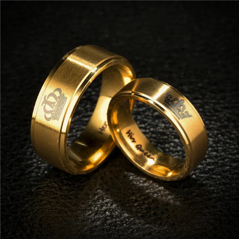 Gold Colour King Queen Crown Stainless Steel Couple Rings for Lovers Promise Men Women Valentine’s Day Gifts
