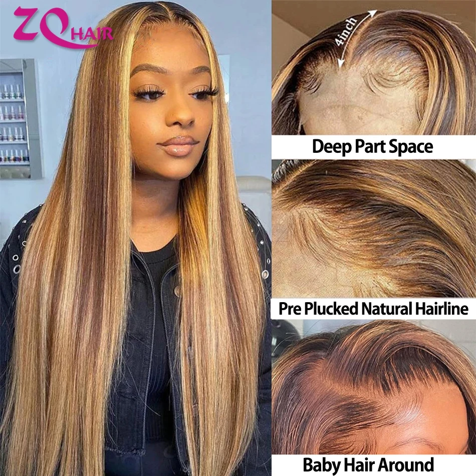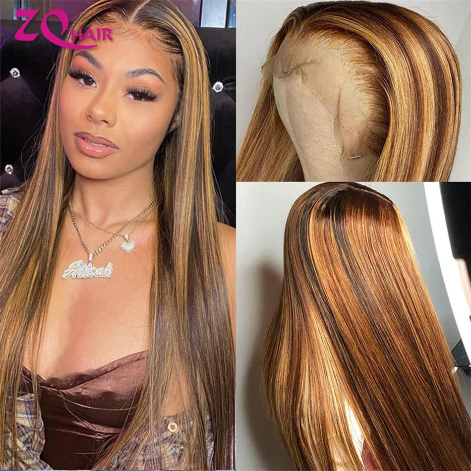 Highlight Wig Human Hair Wigs Bone Straight 13x6 HD Lace Frontal Wigs 100% Human Hair Ombre Honey Blonde 13x4 HD Lace Front Wig
