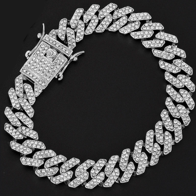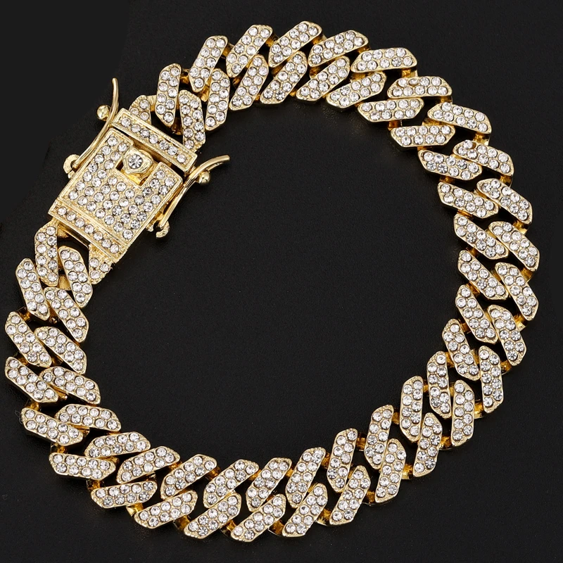 Hip Hop 13MM Rhinestones Prong Iced Out Cuban Link Chain Bracelet Men Women Gold Color Bling Butterfly Cuban Bracelet Jewelry A+