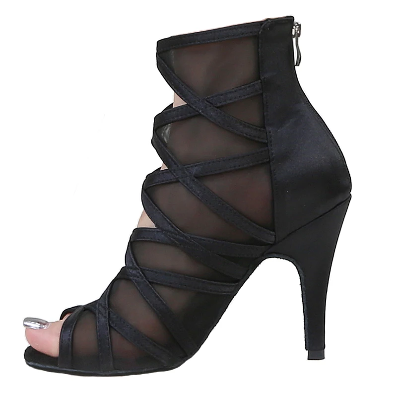 Latin Dance Shoes Women's Salsa Tango Ballroom Party Dance Boots Black Breathable Women's High Heel Dance Sneakers
