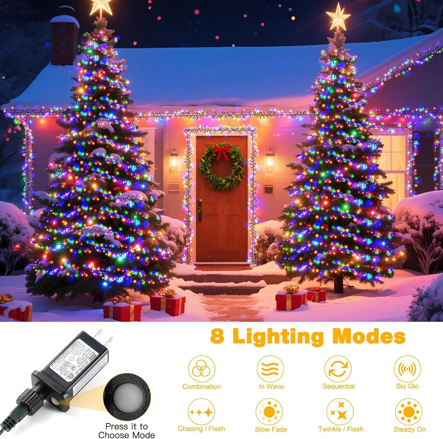 【Remote Control & Memory Function】 With the included remote control, you can turn the Christmas tree lights on/off and adjust 8 lighting modes, 4 brightness levels, and 3 timer functions to your liking. The twinkle lights come with a memory function that ensures the string lights remember your previous settings