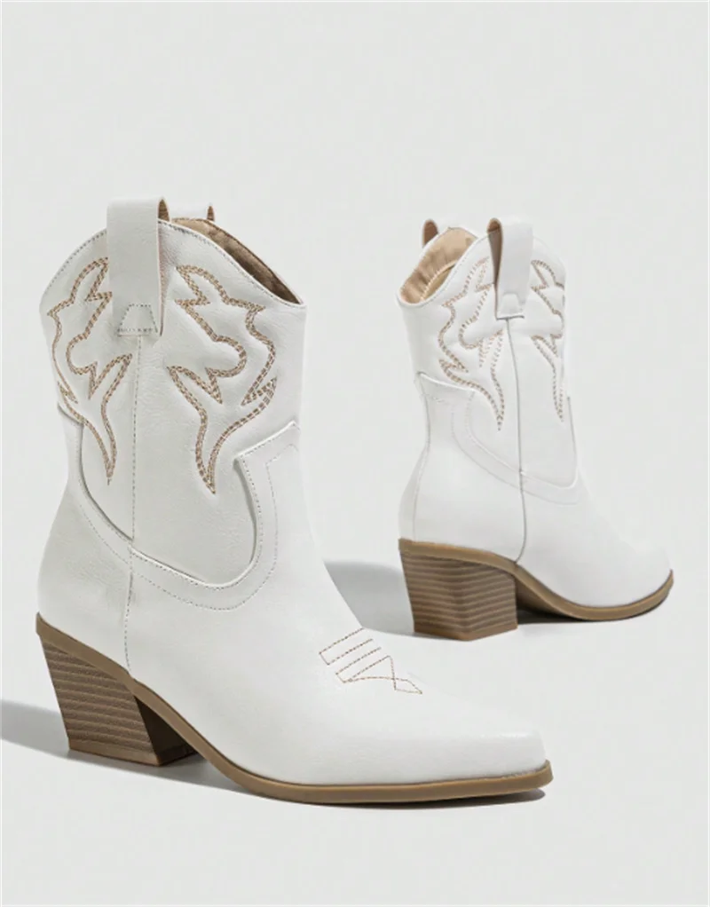 Be the first to review “Liyke Western Style Cowboy Ankle Boots For Women Embroidery Leather Pointed Toe Autumn Winter Low Thick Heels Shoes Black Brown”