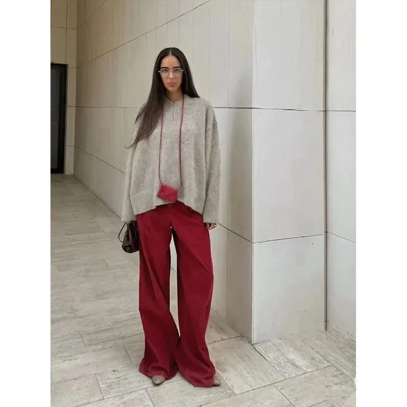 Be the first to review “LUXURY Red Corduroy Wide Leg Pants for Women, Floor Length Casual Pants, Loose and Slimming, Minimalist, 2024 Autumn and Winter”