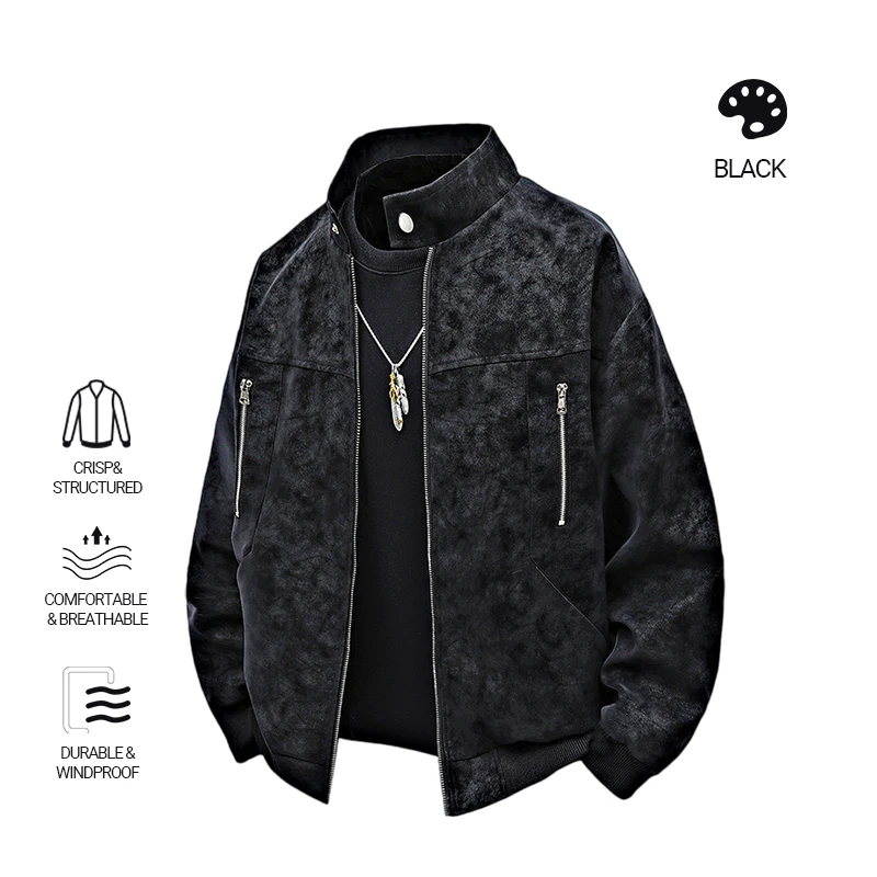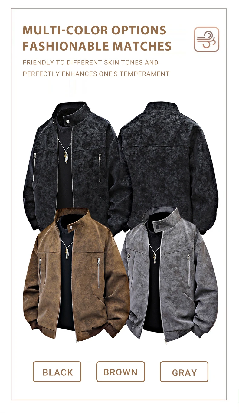Men clothing PU Leather Jacket for Men winter Fashion Stand Collar Vintage Style Loose Versatile Casual Tie-Dye Men’s Jackets
