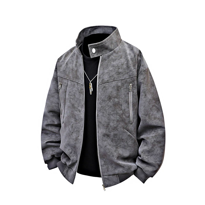 Men clothing PU Leather Jacket for Men winter Fashion Stand Collar Vintage Style Loose Versatile Casual Tie-Dye Men's Jackets