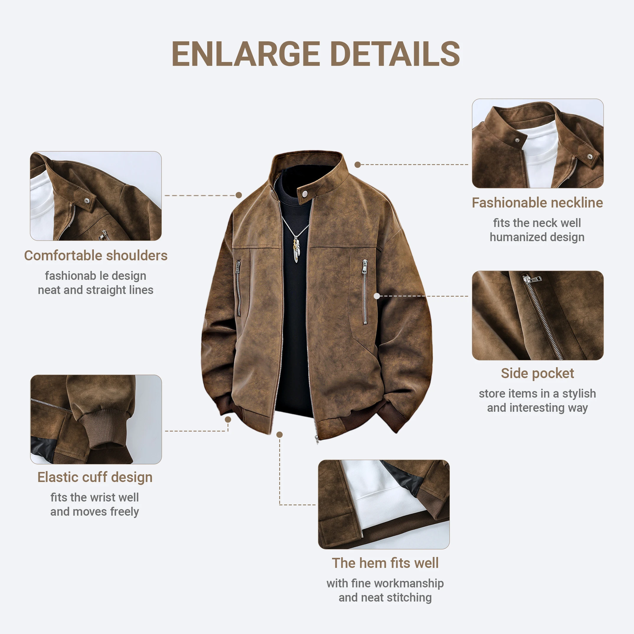 Be the first to review “Men clothing PU Leather Jacket for Men winter Fashion Stand Collar Vintage Style Loose Versatile Casual Tie-Dye Men’s Jackets”