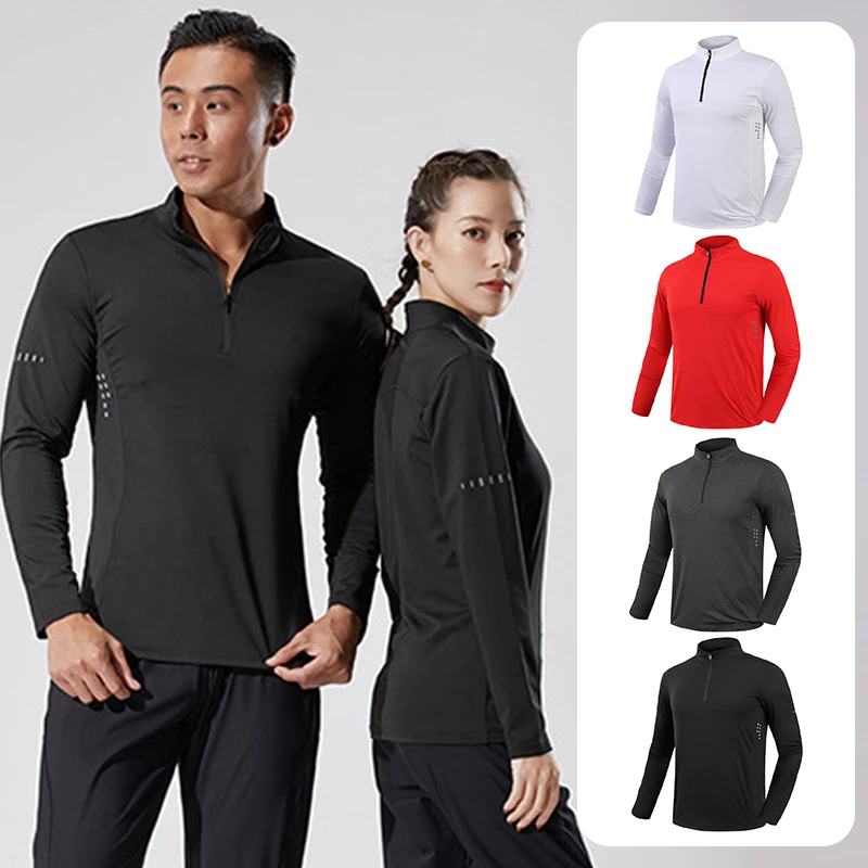Men Slim Fit Track Top Men's Half Zipper Stand Collar Sports T-shirt with Long Sleeves for Running Fitness Training Breathable
