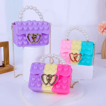 Silicone Love Bubble Jelly Bag, Popper Pressure Relieving Purse, Pop It Handbag With Faux Pearl Handle, Cute Chain Crossbody Bag