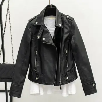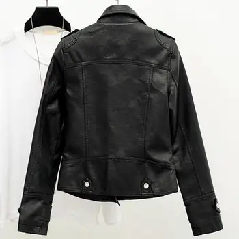 Women Cropped Trench Lapel Collar Leather Jackets Coat with Belt Female Single Button Short Jacket Motorcycle Jacket Outwear