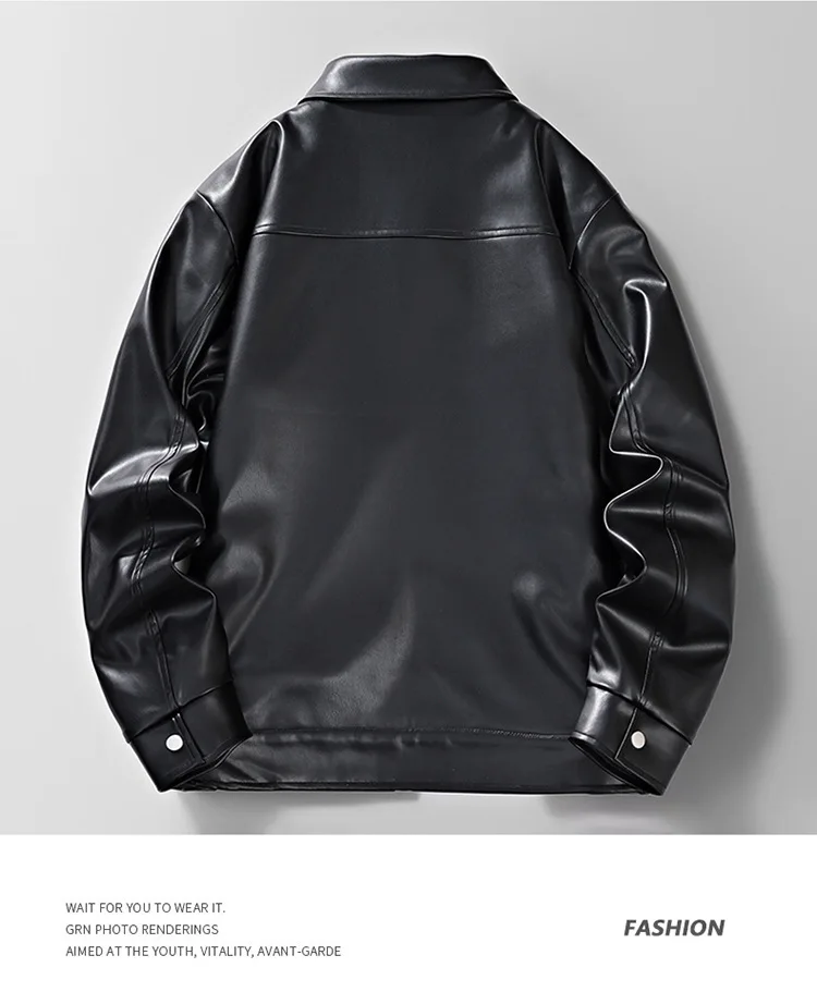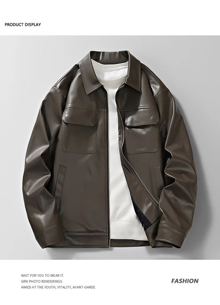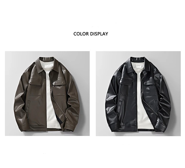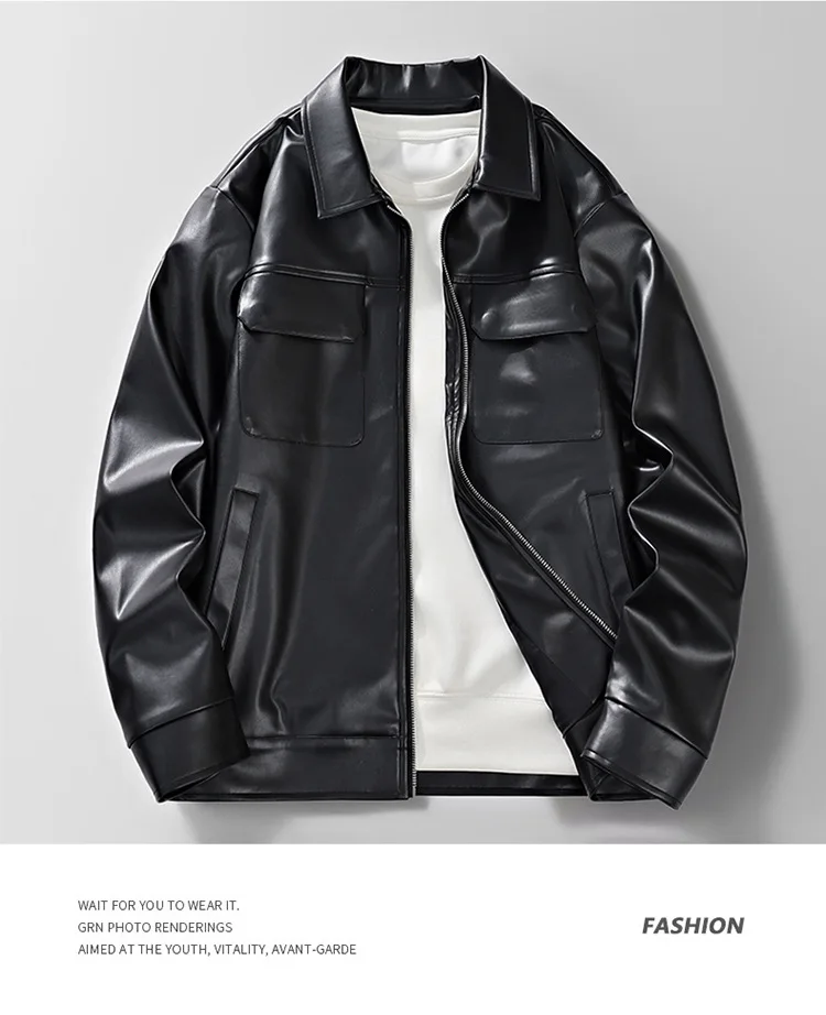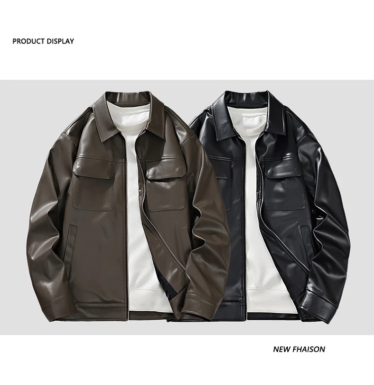 Men’s fashion trend autumn and winter outdoor faux leather jacket comfortable lapel stylish leather jacket Christmas present