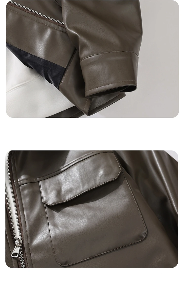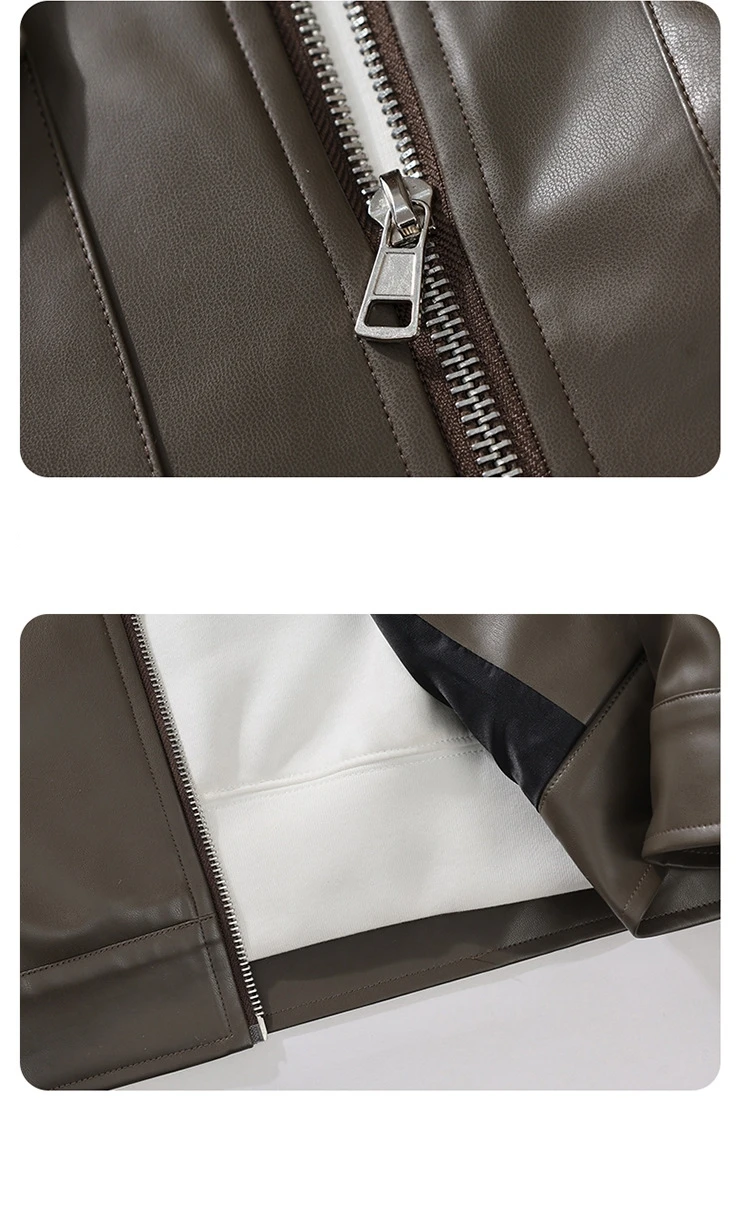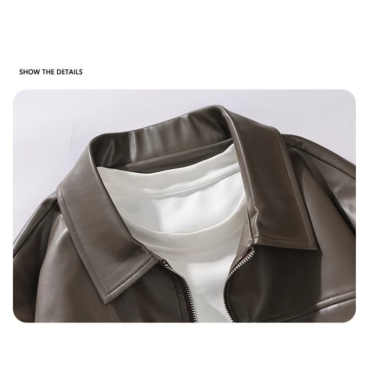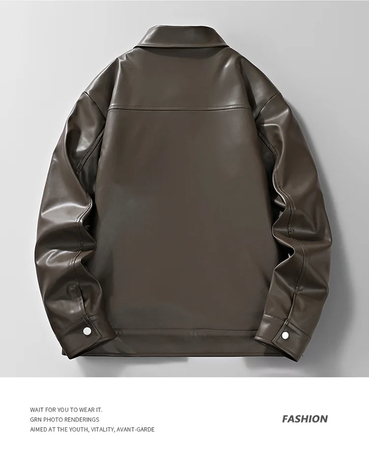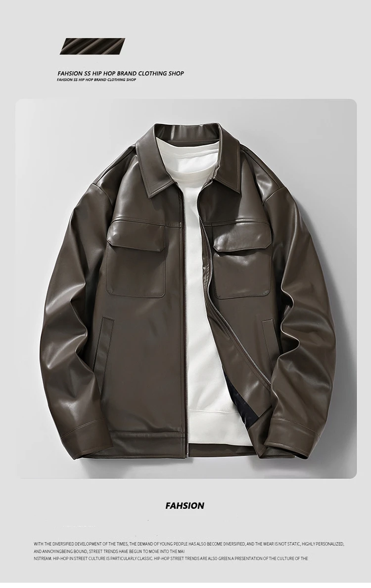 Men’s fashion trend autumn and winter outdoor faux leather jacket comfortable lapel stylish leather jacket Christmas present
