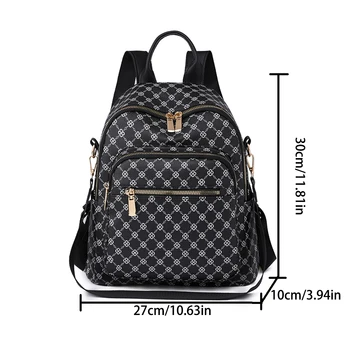 Vintage Geometric Printing Backpack Women’s Large Capacity PU Leather Zipper Adjustable Straps Shoulder Bag for Commute Shopping