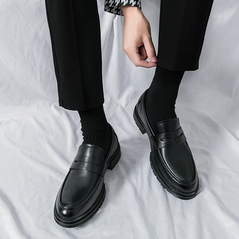 Men’s Shoes Luxury Brand Business Formal Loafers Slip-on Driving Shoes Fashion British Style Men Leather Shoes Moccasins Flats