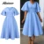 Mlaiscsr Women's Elegant Office Blue Mid Dress V-Neck Ruffle Sleeve High-Waisted Pleated A-Line Birthday Dinner African Vestidos