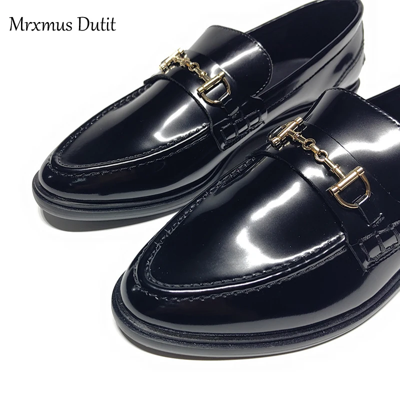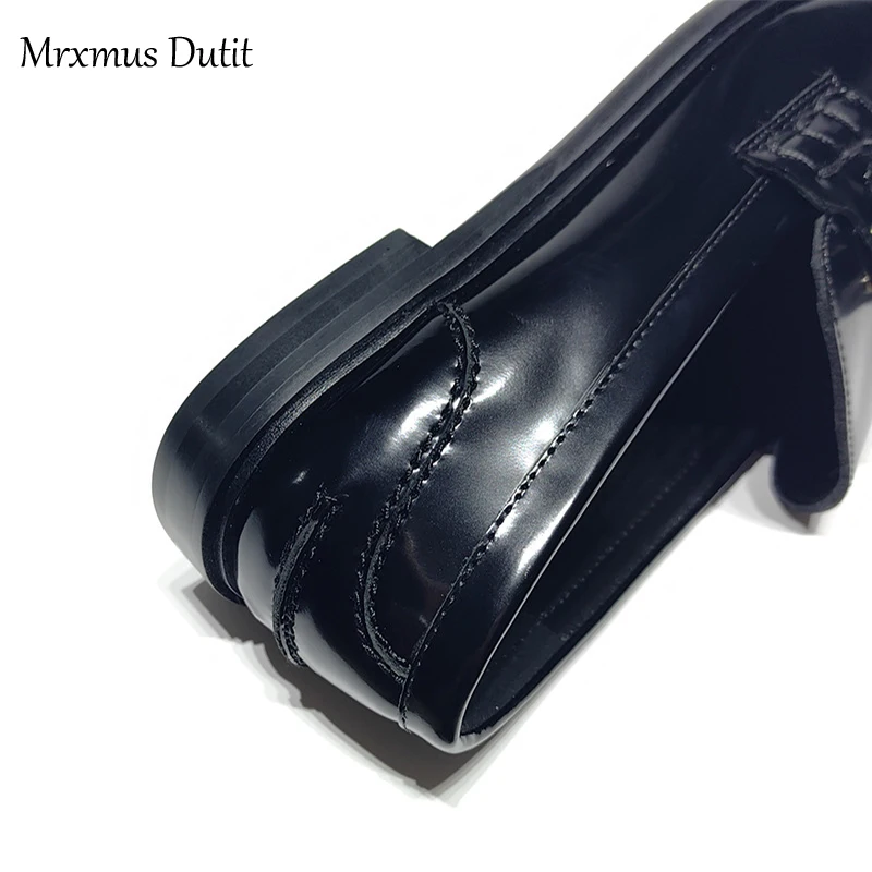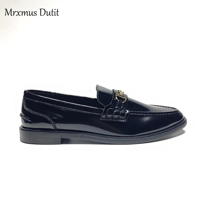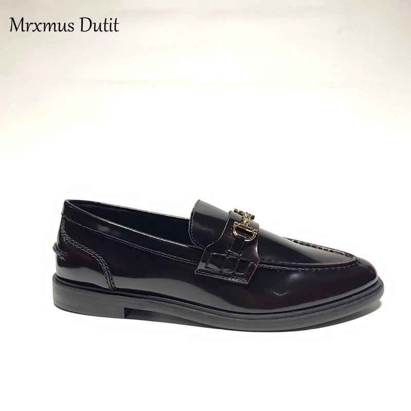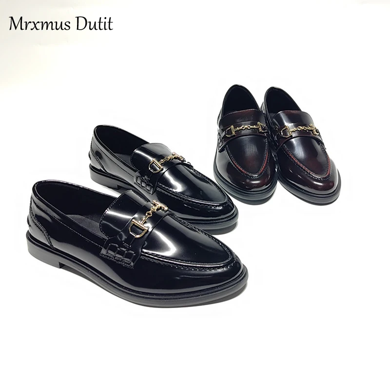 Mrxmus Dutit 2024 Fashion Women New England Style Genuine Leather Round Head Flats Shoes Casual Wild Simple Loafers Female