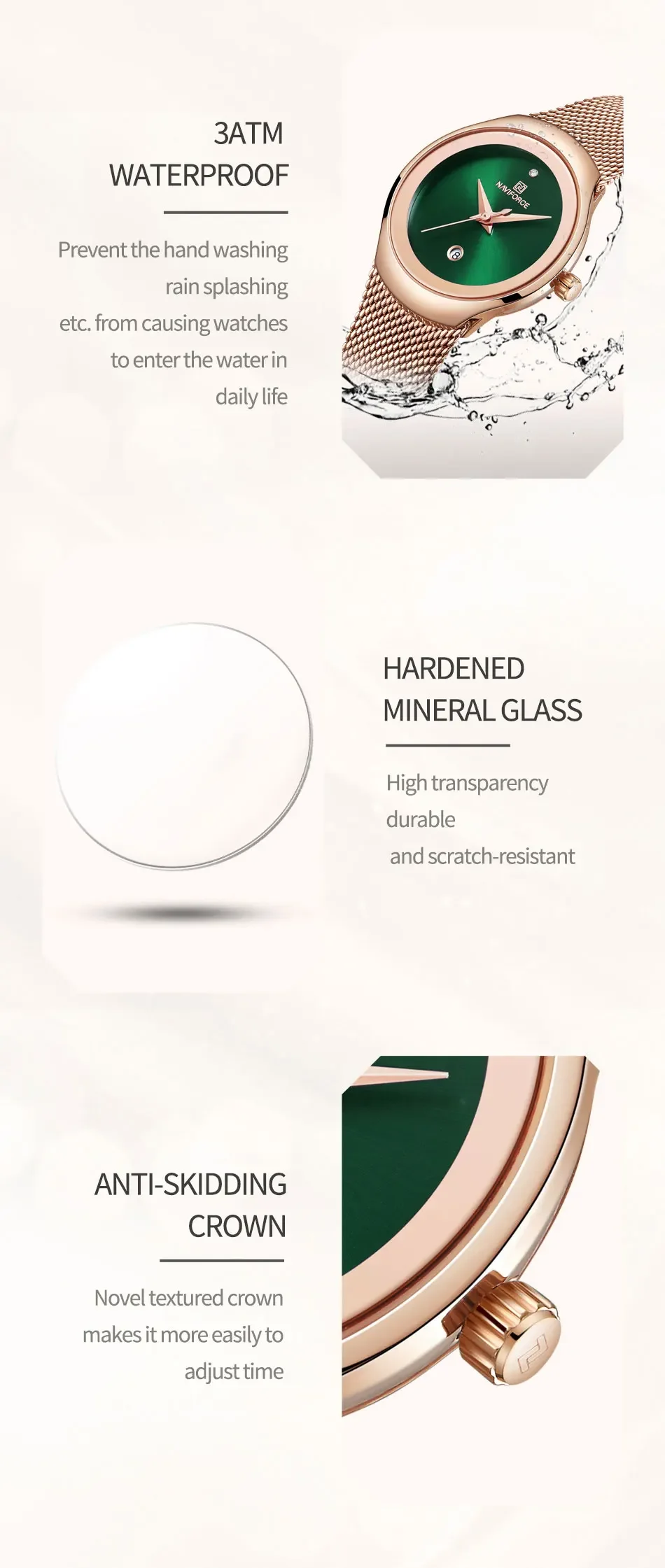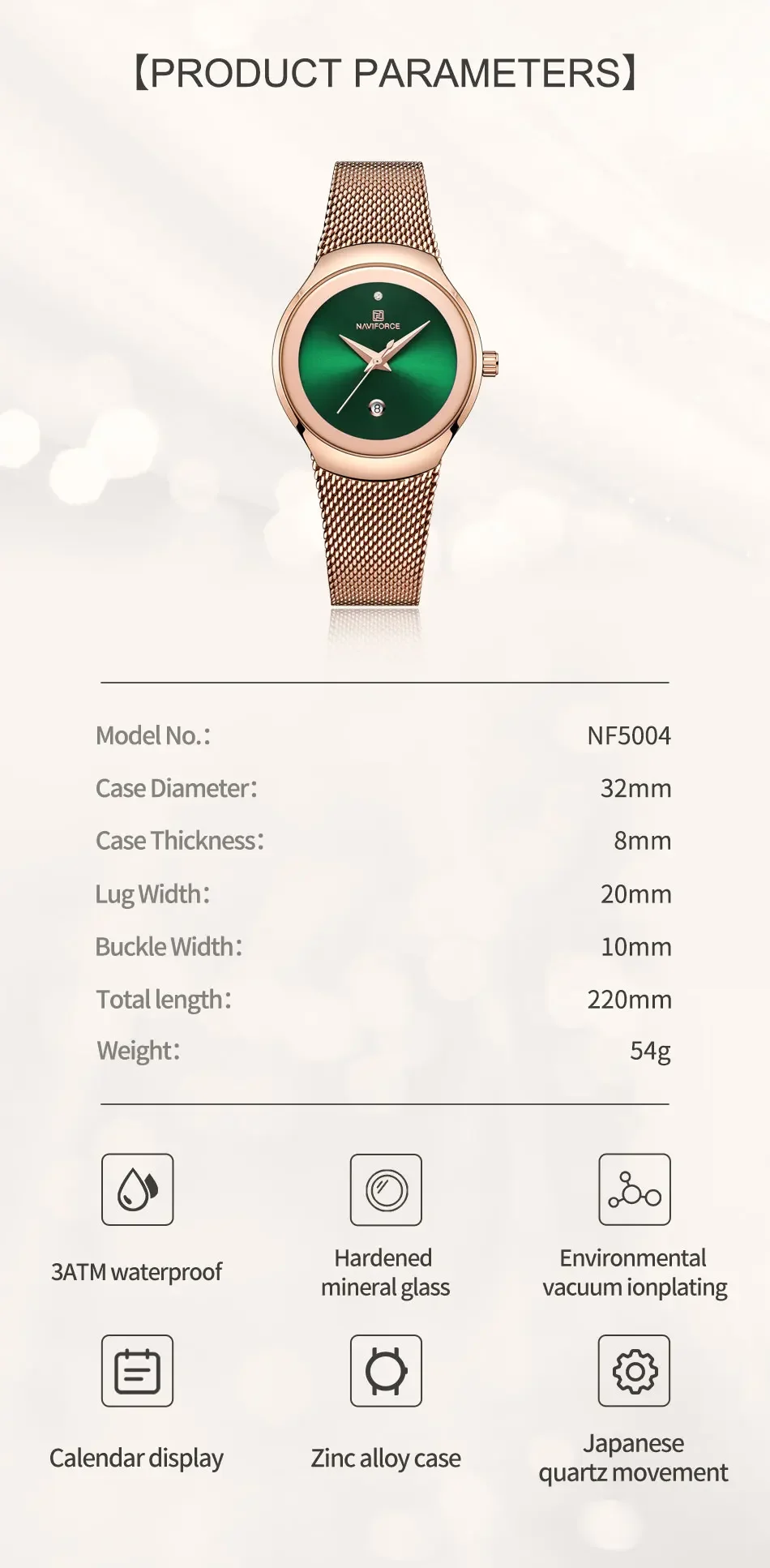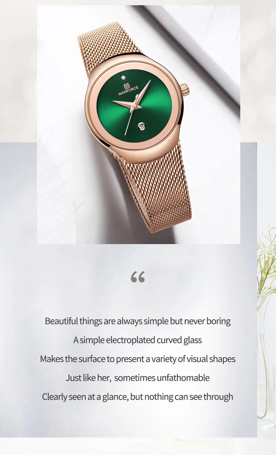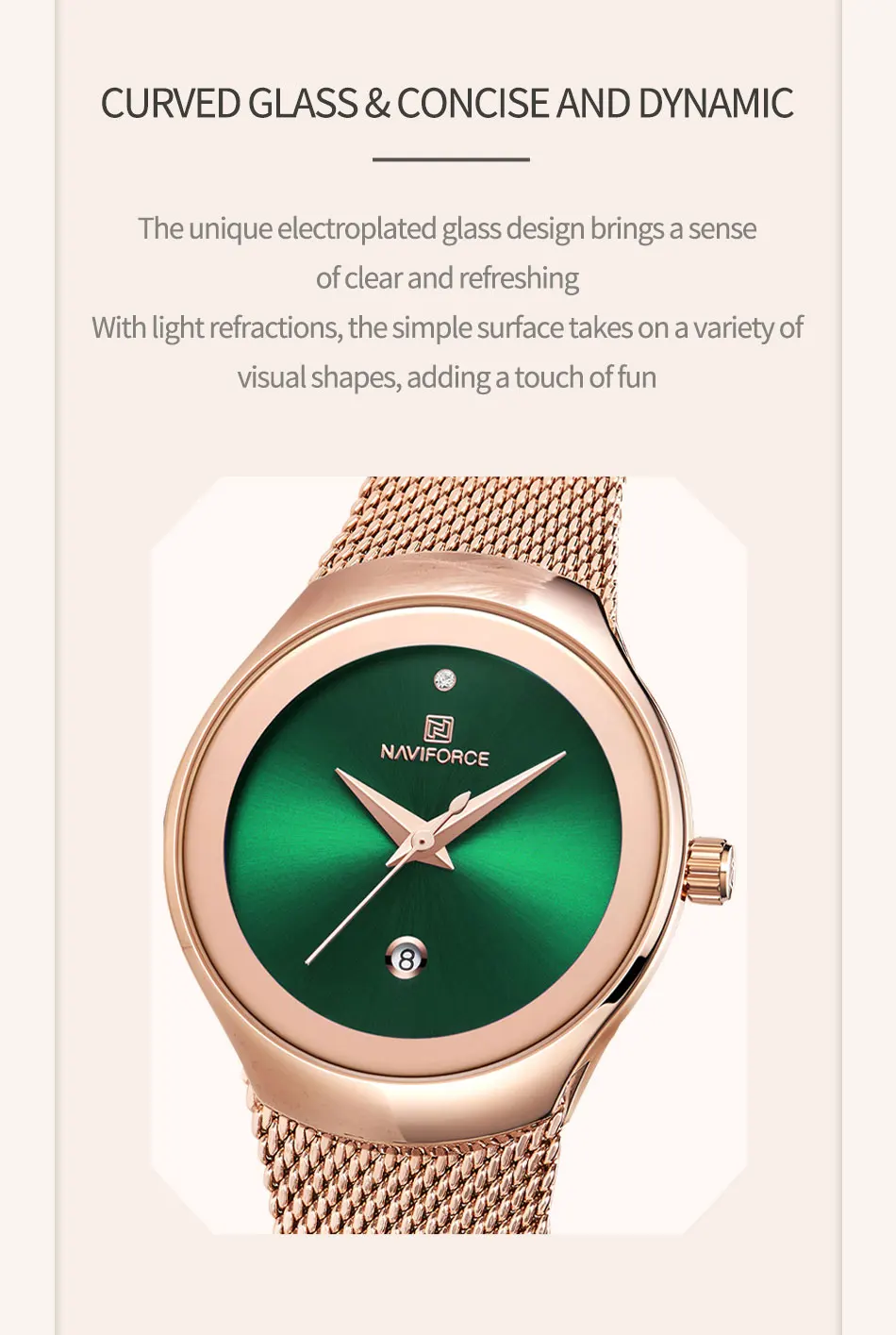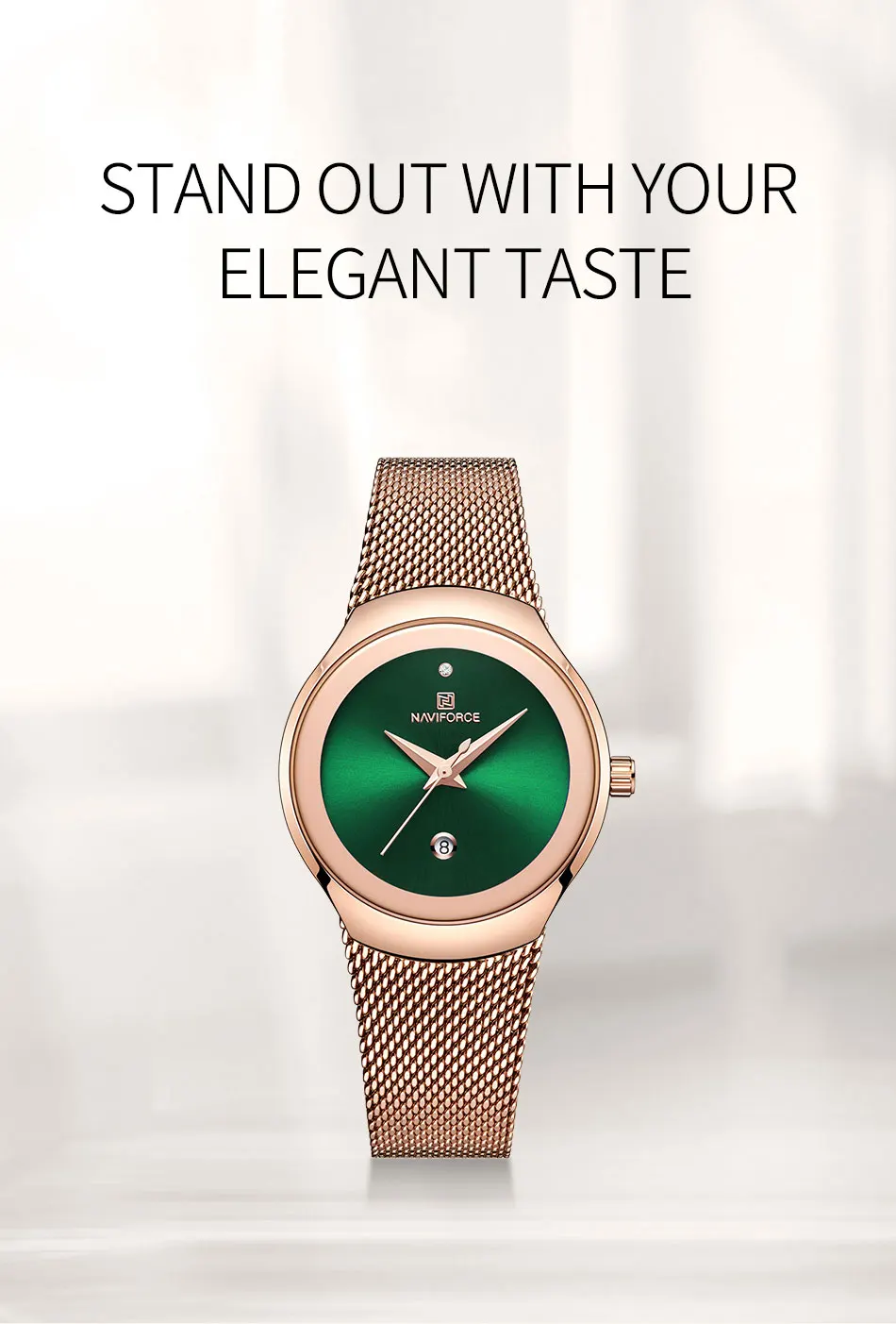Be the first to review “NAVIFORCE Luxury Green Analog Date Quartz Fashion Ladies Watches Mesh Steel Strap Waterproof Business Women Wristwatch Clocks”