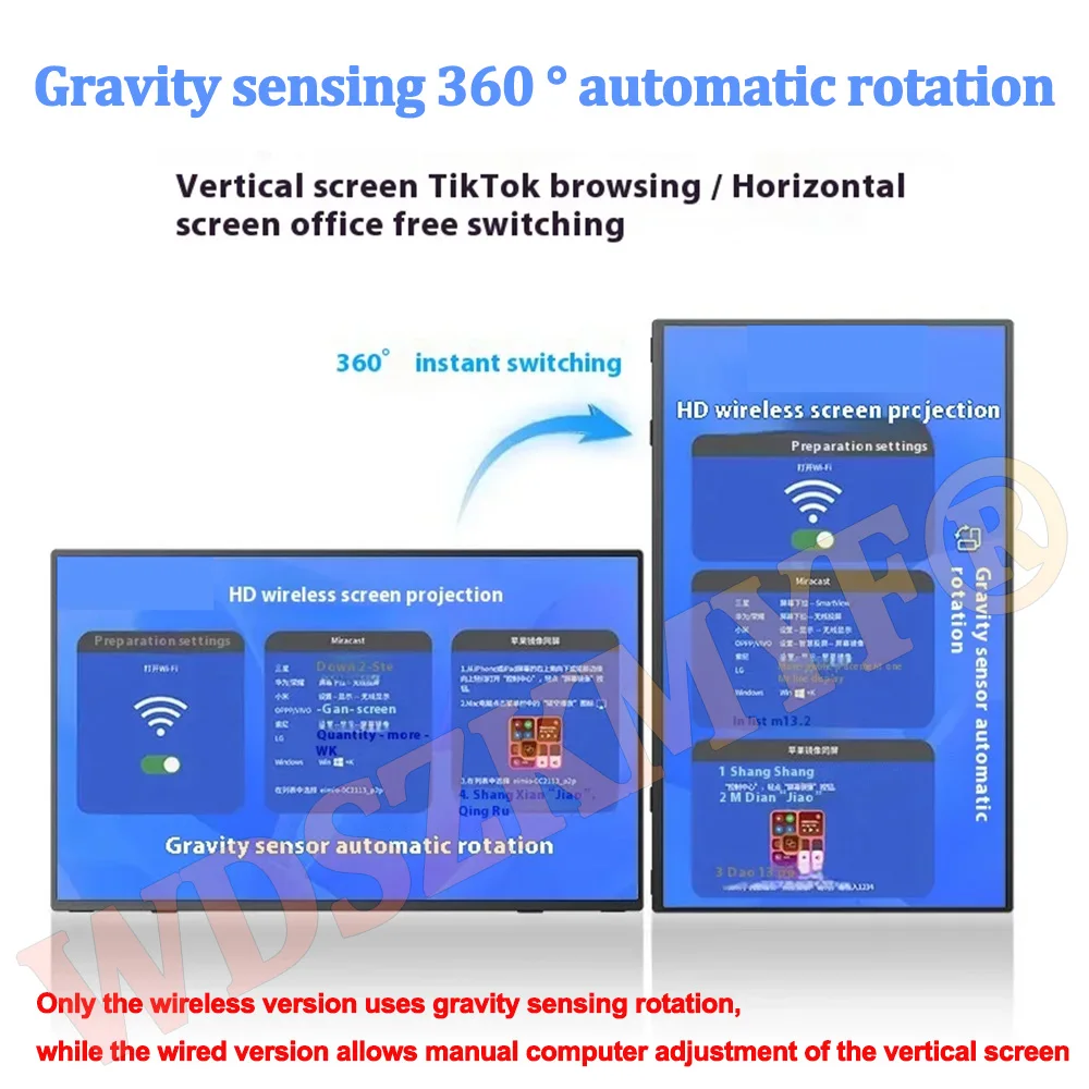 ⭐The wireless version is the 2025 upgraded version, and mobile phones/tablets/computers with WIFI can connect to the WIFI signal on the screen for wireless WIFI screen mirroring. Game consoles still need to be connected to the device through a cable for screen mirroring. (Internal battery not included, USB power still needs to be connected)