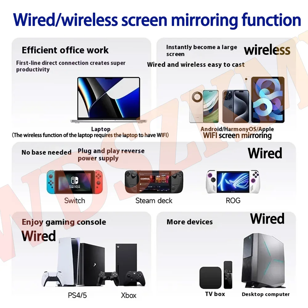 ⭐The wired version is a classic, and computers/phones/game consoles are all connected through cables for screen mirroring