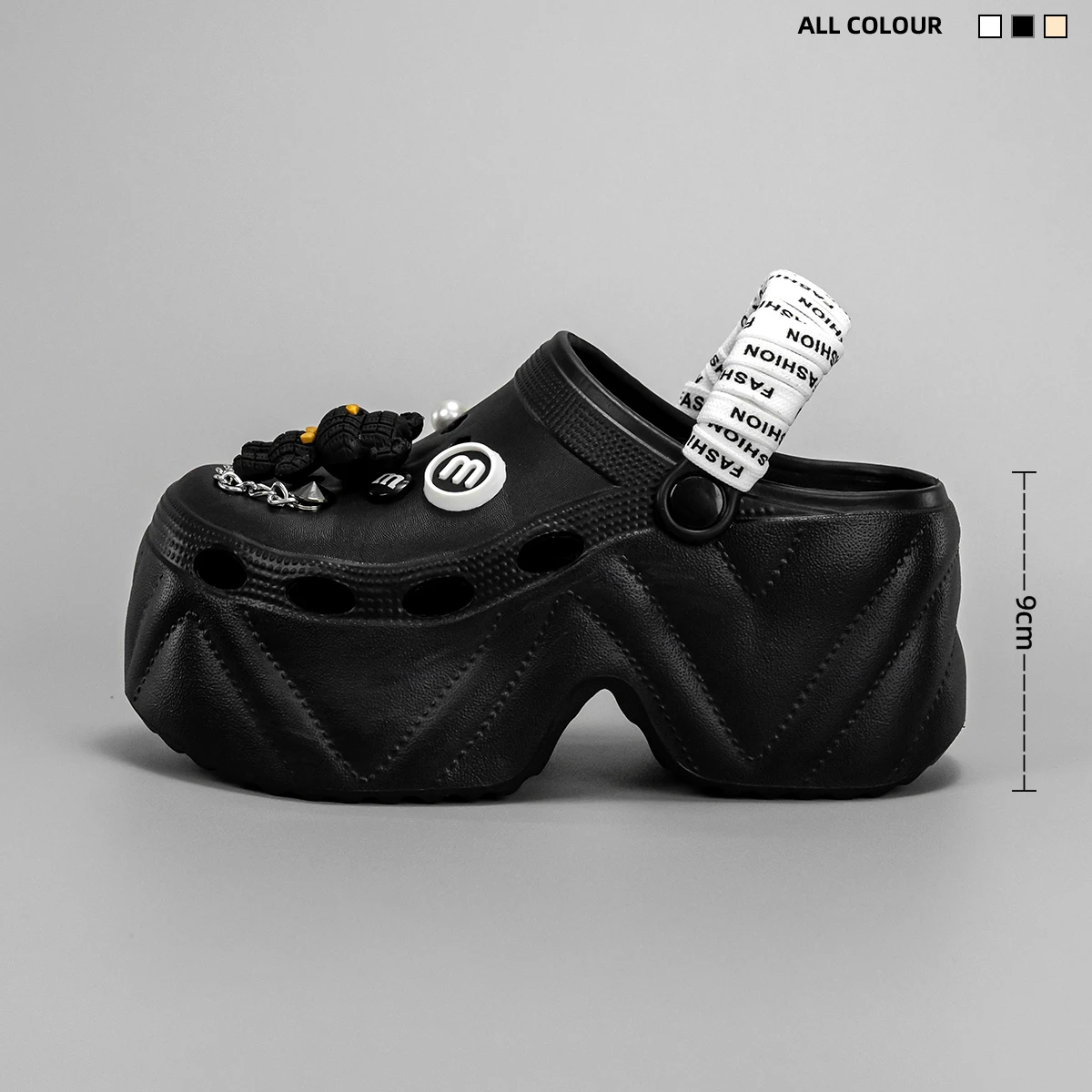 Be the first to review “New Fashionable Black and White Strappy Bear High Heeled Imitation Leather Pattern Clogs X8809”