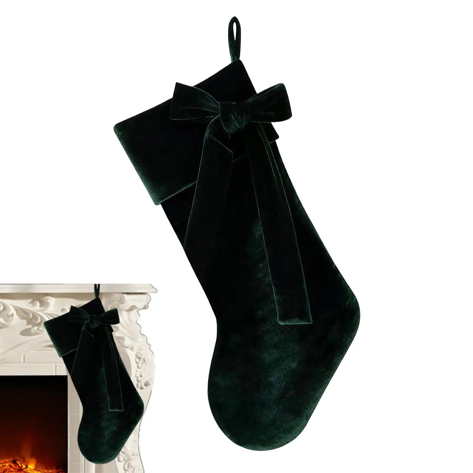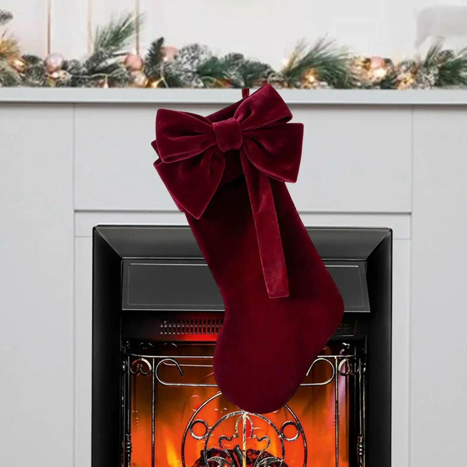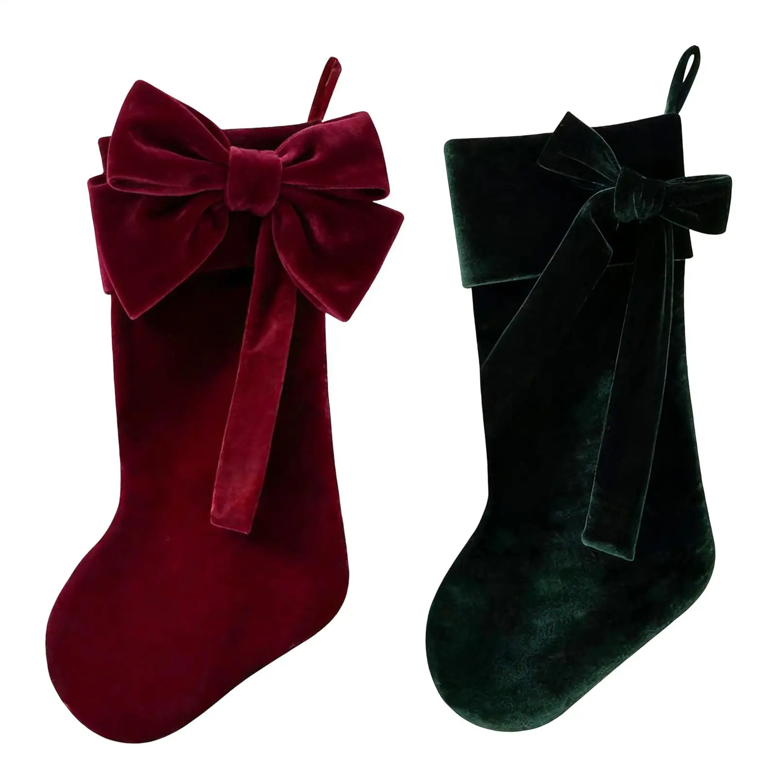 Red/Green Velvet Christmas Stocking Velvet Bow Stockings Christmas Tree Stockings Christmas Holiday Stocking Candy Gift Bag