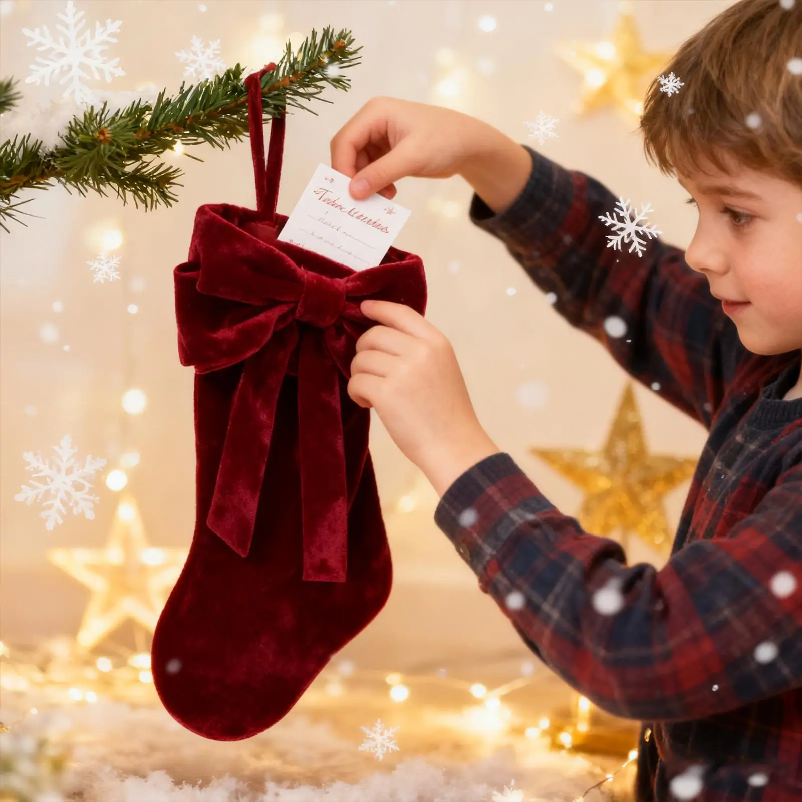 1.Striking Visual Appeal: This Velvet Christmas Stocking includes a standout three-dimensional bow, enriching its design with depth and texture while seamlessly becoming the centerpiece of any seasonal decor setting