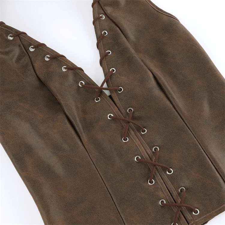 Be the first to review “Retro Brown Women’s Corset Bustier Hollowed-Out Lace-Up Sleeveless Halter Top Overbust Corselet”